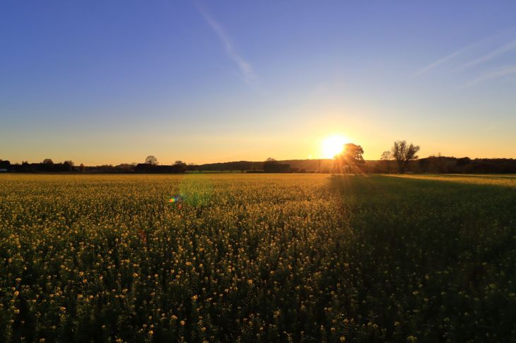 Also nur ein paar Bilder von außen. Stattdessen ein neuer Anlauf zurück an die Eingangs erwähnte Landstraße zwischen Krefeld und Niep. Diesmal schien auch die Sonne, so daß ich den Sonnenuntergang mit Ackersenf erleben durfte (klingt fast wie ein Buchtitel). Während Parks und Halden mittlerweile überlaufen sind, war ich hier, mitten auf dem Acker, wenigstens alleine. Nur ein paar Autos im Feierabendverkehr rauschten an mir vorbei.