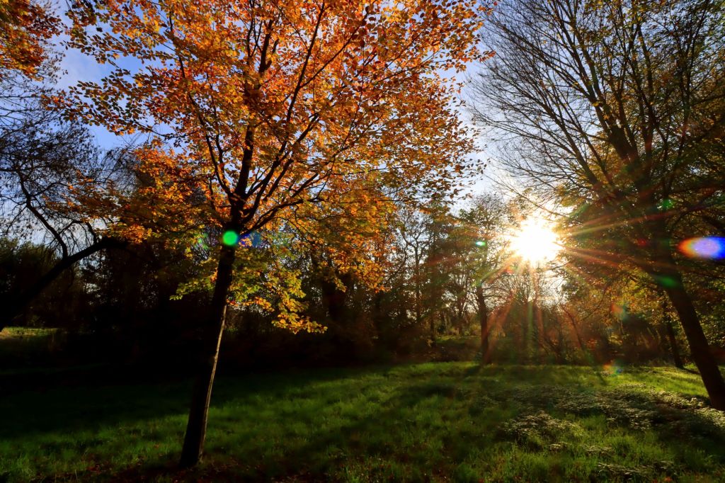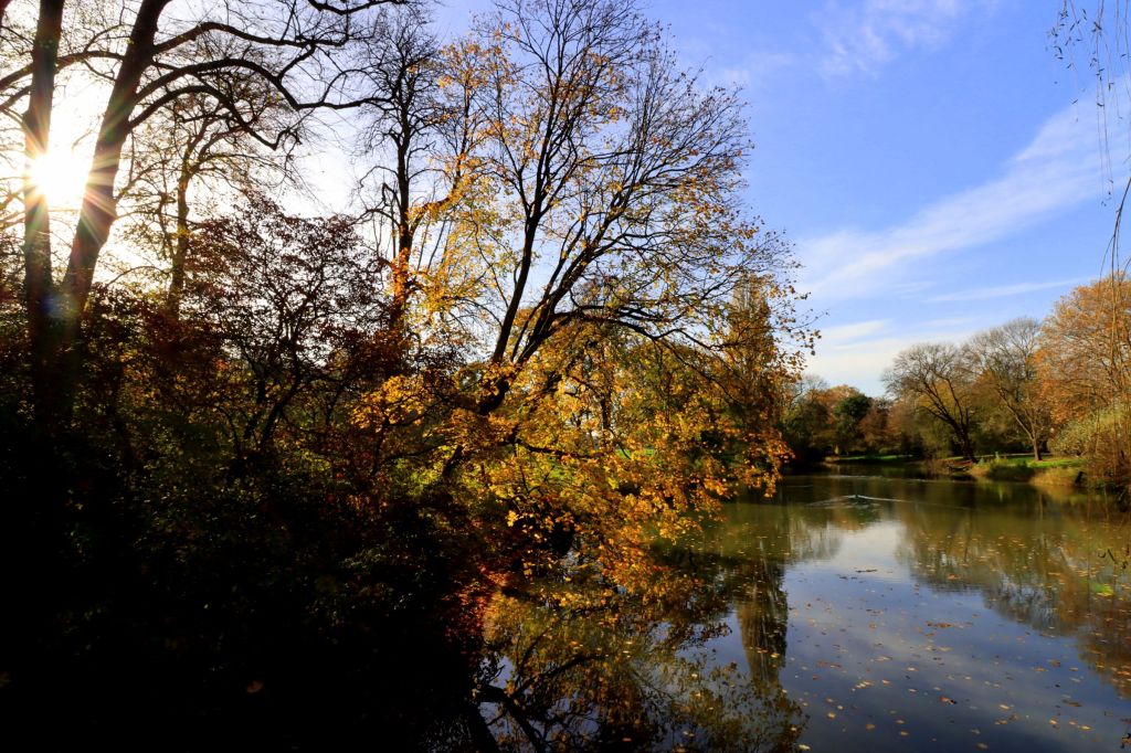 So bin ich Ende Oktober raus an die Moerser Landstraße zwischen Krefeld und Niep, auf der Suche nach Ackersenf und Sonnenuntergang. Leider war es mit Sonne an dem Nachmittag aber nicht weit her, kein Sonnenuntergang, kein goldener Oktober. Der kam erst mit Verspätung, genauer gesagt zum ersten November Wochenende. Also dann, jetzt aber raus, Blätter riechen, Kopf freimachen. Ich war mal wieder im Greiffenhostpark in Krefeld Linn, einem hübschen Park, der über einen kurzen Fußweg mit der Burg Linn verbunden ist.