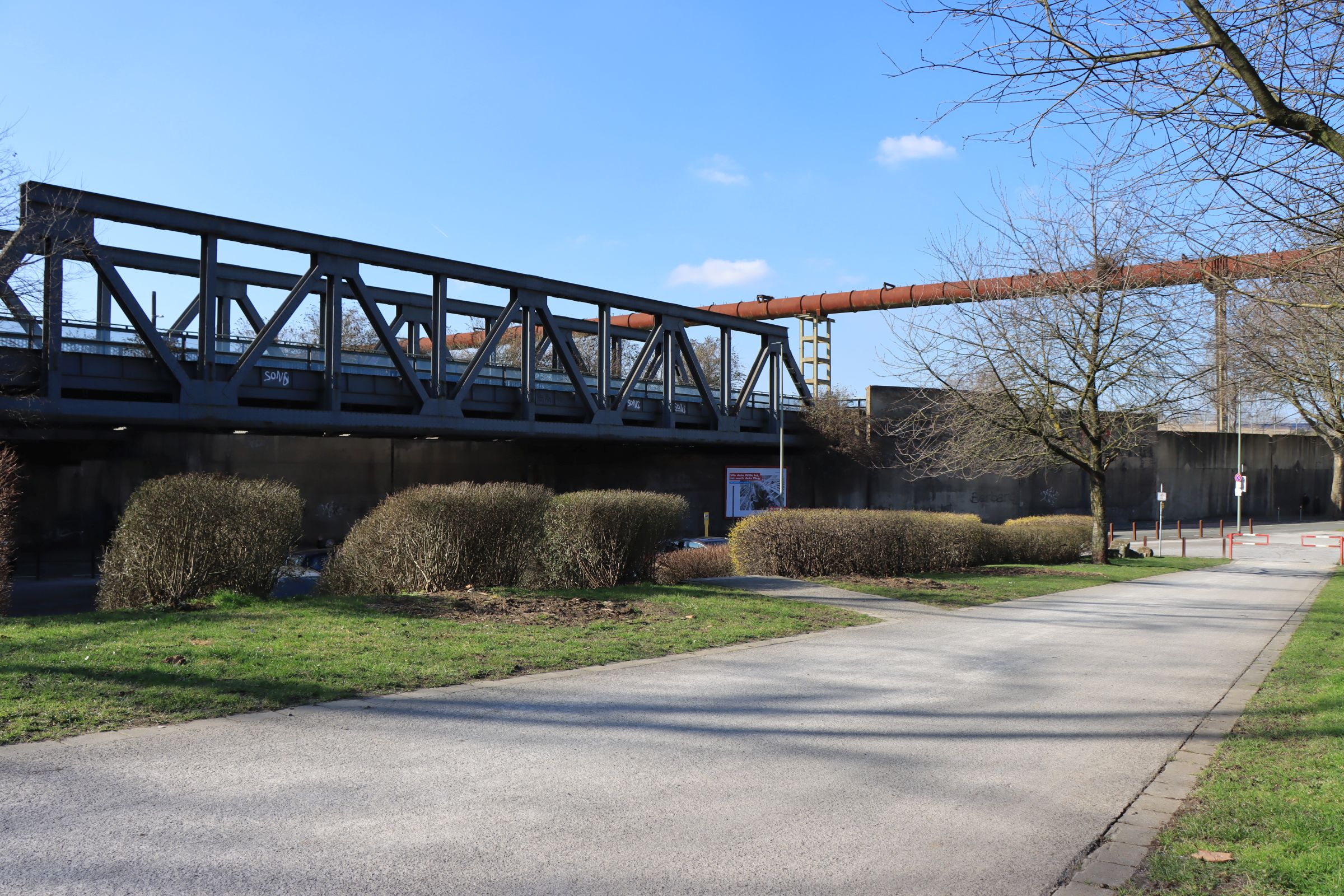 Umso erstaunter war ich, als ich den Landschaftspark vor kurzem, zu Fuß vom Botanischen Garten kommend, über die Hamborner Straße besuchen wollte. Hier gibt es mittlerweile eine ganze Reihe relativ neuer Stellplätze gleich unterhalb des Möbelkaufhauses Ikea. Von hier aus führt ein breiter Fußweg direkt in den Landschaftspark. Oberhalb der Autobahn A59 (mit Blick aufs Autobahnkreuz Duisburg Nord) sieht man in der Ferne bereits den Hochofen. Jenachdem wohin man im Park möchte, braucht man von hieraus 10-15 Min. bis man sein Ziel erreicht hat. Nebenbei, der Botanische Garten hat jetzt auch einen Ein-/Ausgang in Richtung Beecker Straße und ist damit keine 5 Min. entfernt.