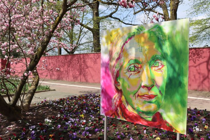 Auf den rund 65 Hektar des Grugaparks sind aktuell 3.500 Gäste erlaubt. Irgendwie blüht fast immer irgendwas, aktuell reckten auch schon die ersten Tulpen ihren Kopf aus der Erde. Anlässlich des 110. Internationalen Frauentags läuft bis zum 9. Mai die Open-Air-Ausstellung „Fearless Women“ auf den Farbenterrassen zwischen Haupteingang und Orangerie. Der Künstler Oliver Schäfer zeigt hier 17 furchtlose Frauen aus verschiedenen Bereichen und Epochen.