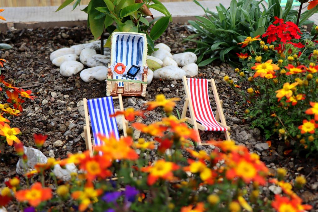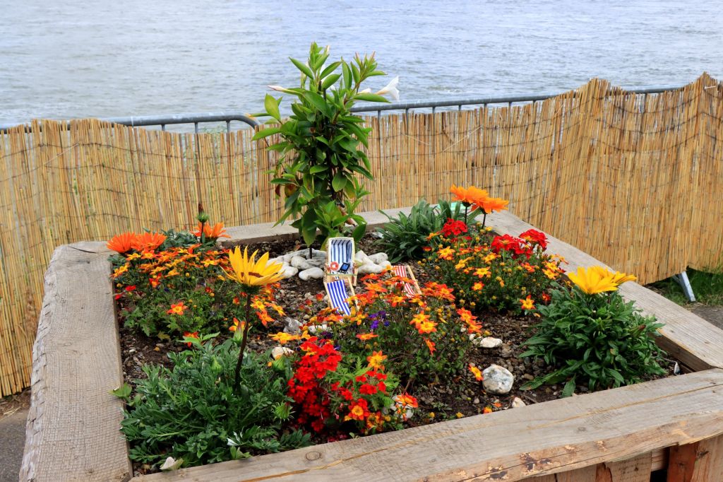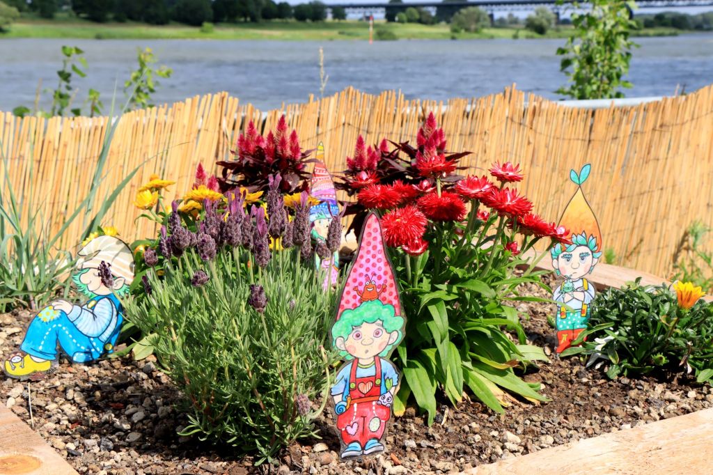 Geschmäcker sind selbstverständlich verschieden und man muß nicht alle Beete toll finden, aber ein paar schöne Beete waren schon darunter. Mal mit Wichteln bestückt, mal mit Insektenhotel und mal mit bunten Farben bepflanzt. Sogar aus dem Rhein gefischter Müll dient einem Kasten als Deko. Die Bilderauswahl hier spiegelt verständlicherweise meinen persönlichen Geschmack wieder. Bevor ihr jetzt 50 km Anfahrt in Kauf nehmt, es ist nicht die Bundesgartenschau. 😉