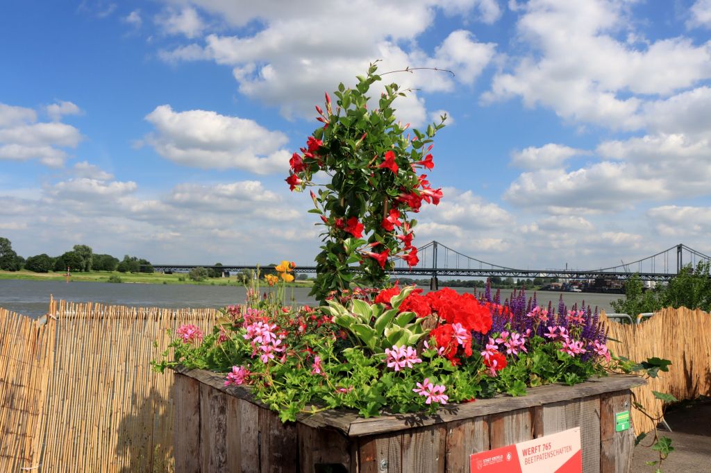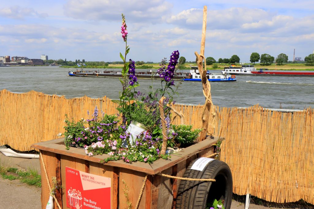 Nach der Street Art im Jahr 2017 sollen dieses Jahr 46 mit Pflanzensubstrat befüllte Holzkästen den alten Industriehafen aufmöbeln. Privatleute, Schulen, Firmen und Vereine konnten die Blumenbeete bepflanzen und somit über den Sommer Beetpaten werden. Gießwasser steht in Wassertanks bereit, die regelmäßig mit Rheinwasser nachgefüllt werden. Neben dem Biergarten bei Rheinkilometer 765 somit ein neues Ziel und ein neuer Fotohotspot.