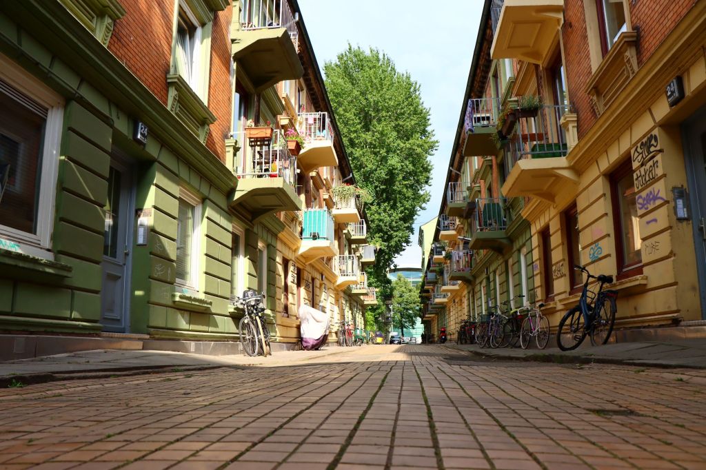 Beim letzten Mal hatte ich mein Hotel gar nicht weit entfernt vom Karolinenviertel und habe in der Nähe nach StreetArt Ausschau gehalten. Früher Arbeiterquartier heute Szeneviertel entlang der Karolinenstraße. Zum einen wollte ich mir ein hippes geröstetes Fischbrötchen a.k.a. FishRoll mit Garnelen gönnen (Underdocks) und zum anderen habe ich die Karolinenpassage gesucht. Es handelt sich hier um eine der wenigen erhaltenen aber gerne fotografierten historischen Wohnstraßen aus dem Beginn des 17. Jahrhunderts. Die Sonne steht schon tief, es ist gegen 17.30 Uhr als ich o.g. Bilder mache.