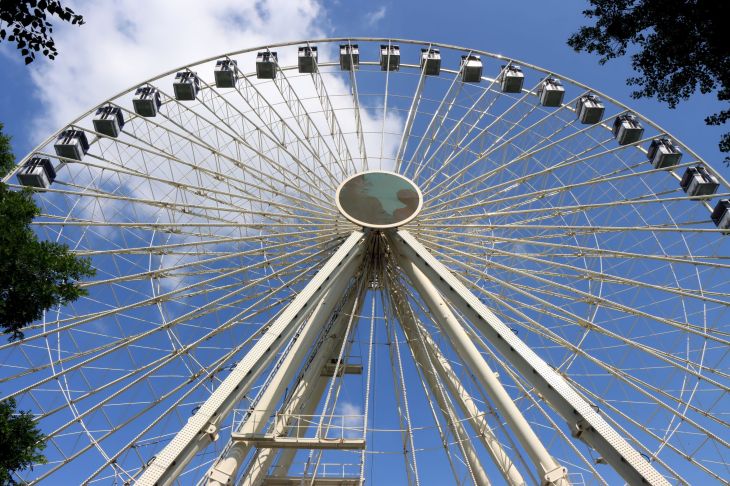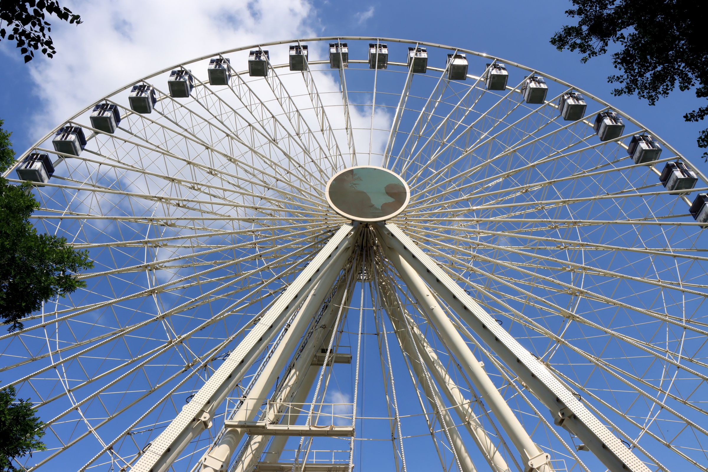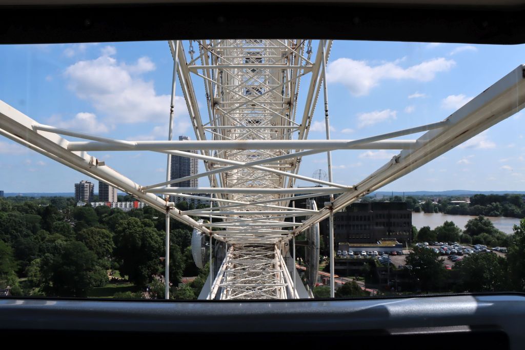 Da ich kurz vor meiner ersten Tour lesen mußte, daß mein bisher genutztes Parkhaus renoviert wird, habe ich dieses Mal im Parkhaus Quincy/Breite Straße (ehem. Du Mont Carré), Neven-DuMont-Straße 1 geparkt. Sonntags kostet es dort 7,- €/Tag und es liegt nur ein paar Schritte vom Appellhofplatz entfernt. Mein erster Weg führte mich von dort in Richtung Zoo/Flora. Das mit 55 Meter Höhe größte transportable Riesenrad der Welt (Europa-Rad) hat den Sommer über (noch bis Ende August) seinen Platz dort gefunden.
