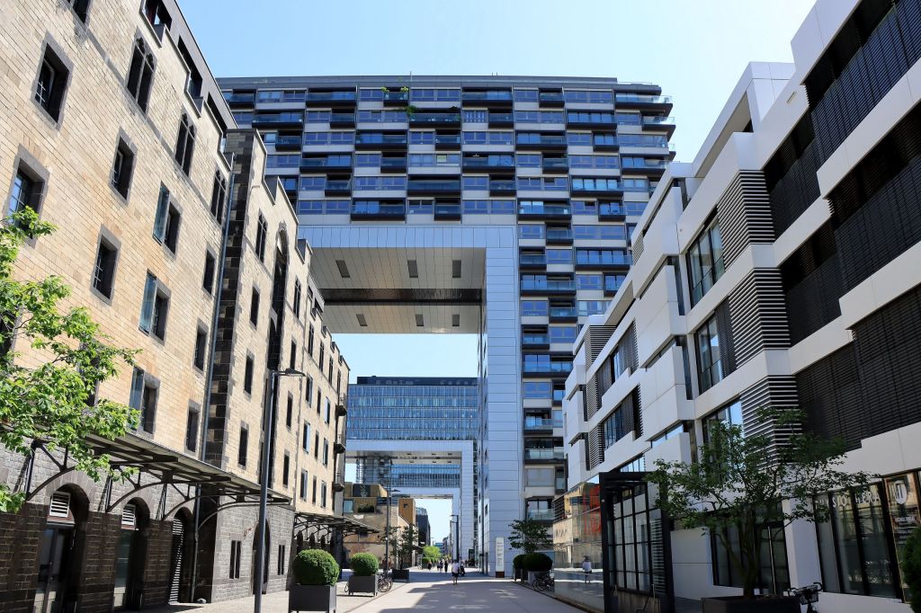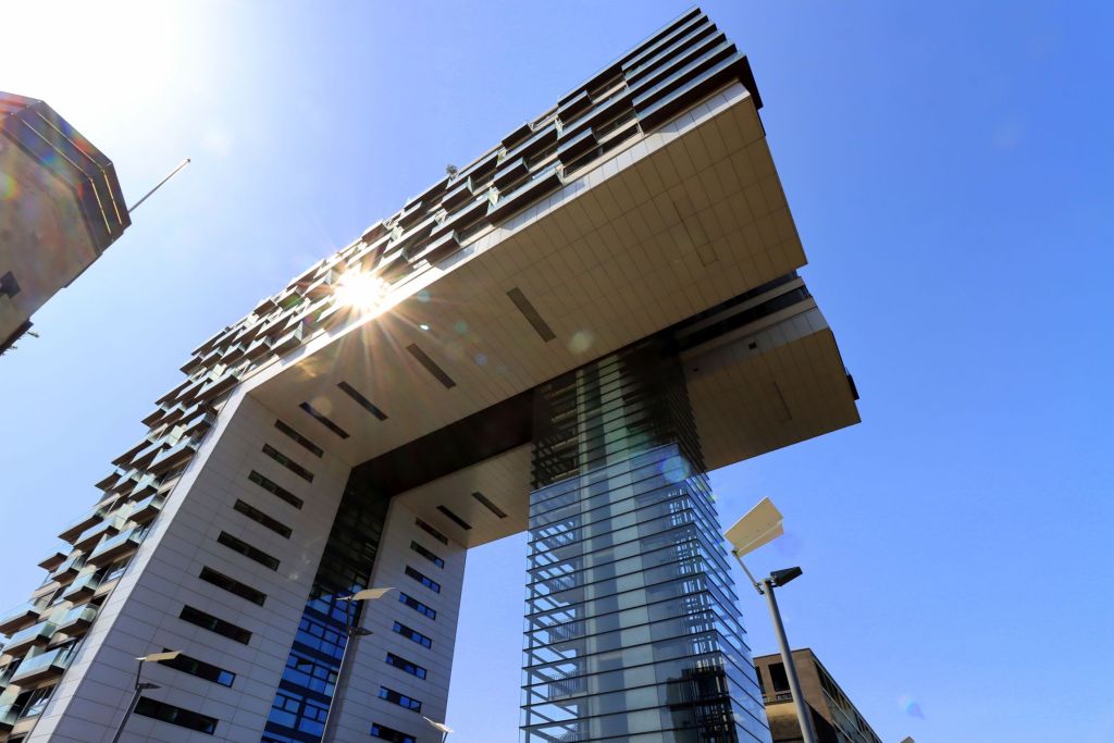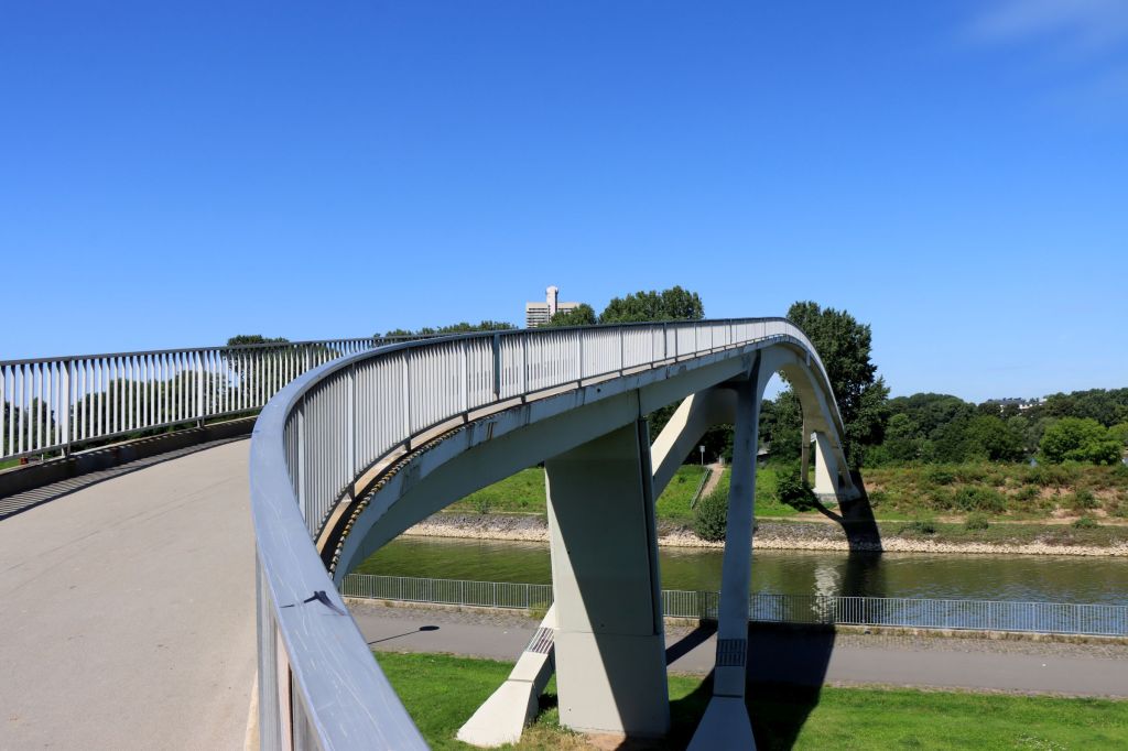 Das sonnige Wetter treibt mich als nächstes zu den Kranhäusern in den Rheinauhafen. Die Häuser bieten sowohl von der Wasser- als auch von der Hafenseite ein interessantes Motiv. Außerdem war es der Zeitpunkt, nach den Unwettern und Überflutungen Mitte Juli, einen Blick auf den Pegel des Rheins zu werfen. Das Wasser schwappte noch nicht über die Uferkante, war aber, wie auf einigen Bildern zu sehen, schlammig braun. Gerne wäre ich im Rheinauhafen noch weiter nach Süden gelaufen, immerhin ist die Promenade bis zur Südbrücke knapp 2,0 km lang, aber die Zeit rannte und der Tag, der für mich erst gegen Mittag begonnen hatte, war wie verflogen.