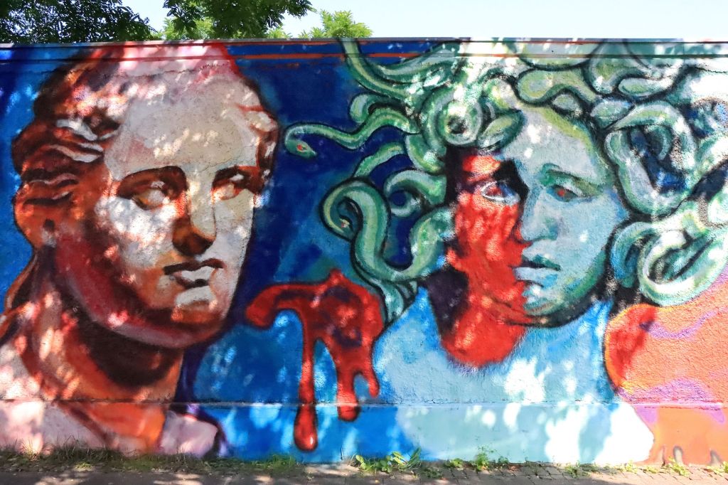 Erinnert ihr euch an meine Blogbeiträge zum 40 Grad Urban Art Festival in Düsseldorf? Im Jahr 2015 habe ich zum ersten Mal etwas geschrieben, ebenso im Jahr 2019. 40 Grad Urban Art ist ein Festival für Street Art Kunst im öffentlichen Raum. Dieses Jahr fand es trotz schlechten Wetters Ende August wieder in Düsseldorf statt und dieses Jahr an einer prominenten Stelle, auf und rumd um die Kiefernstraße in Düsseldorf Flingern.