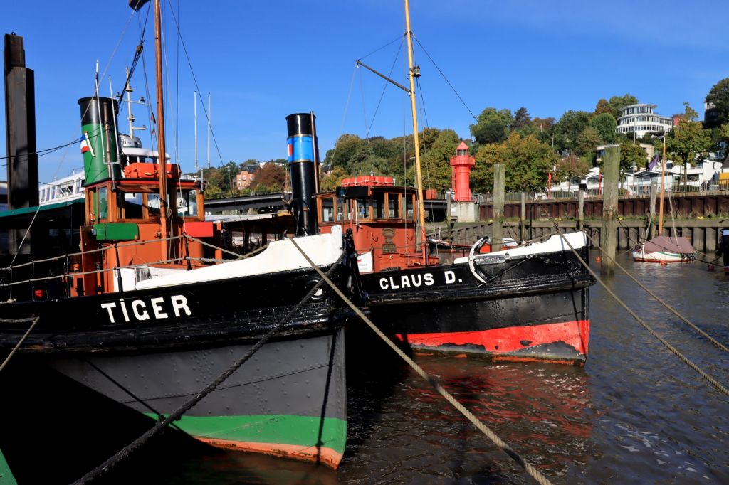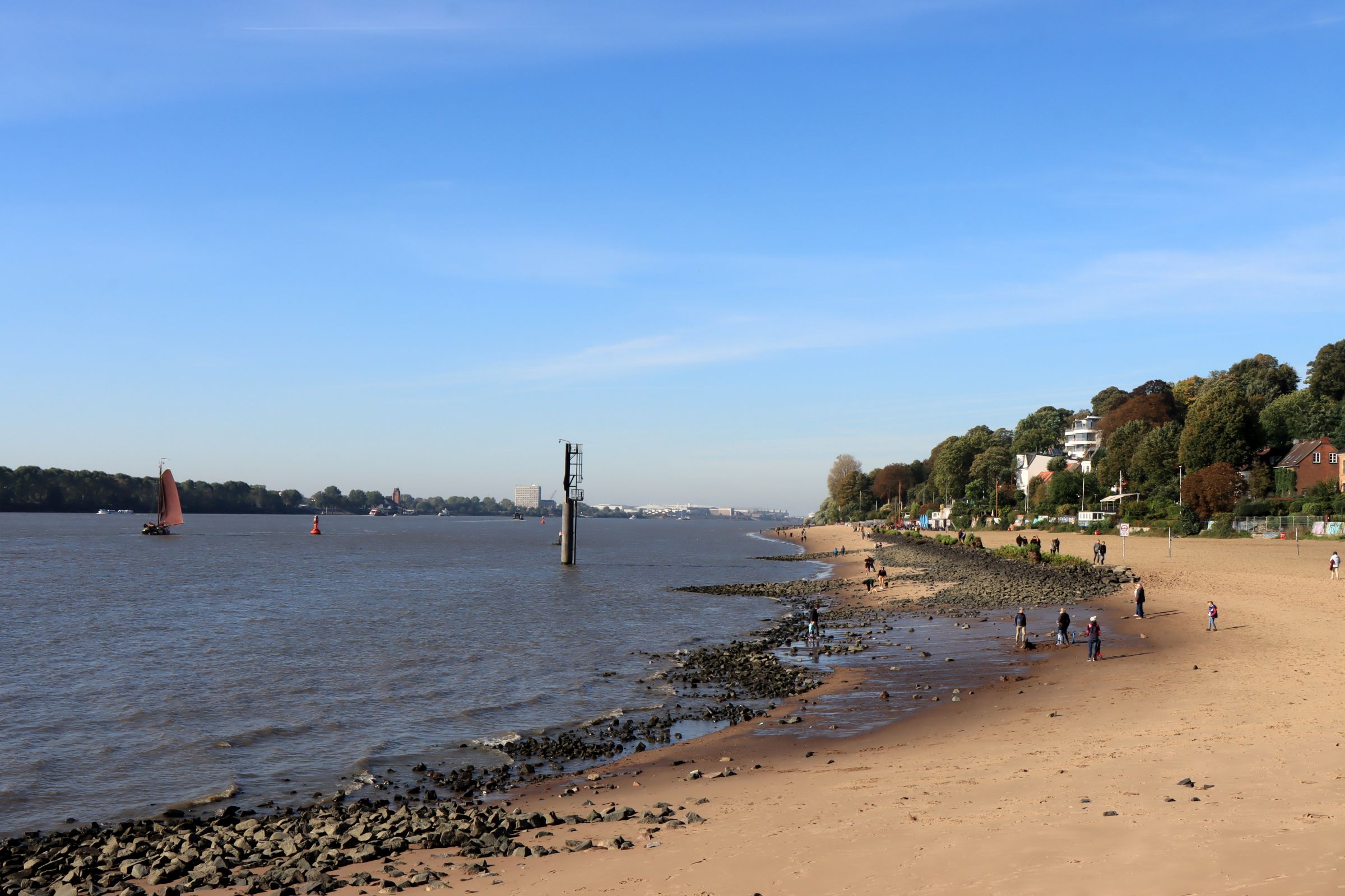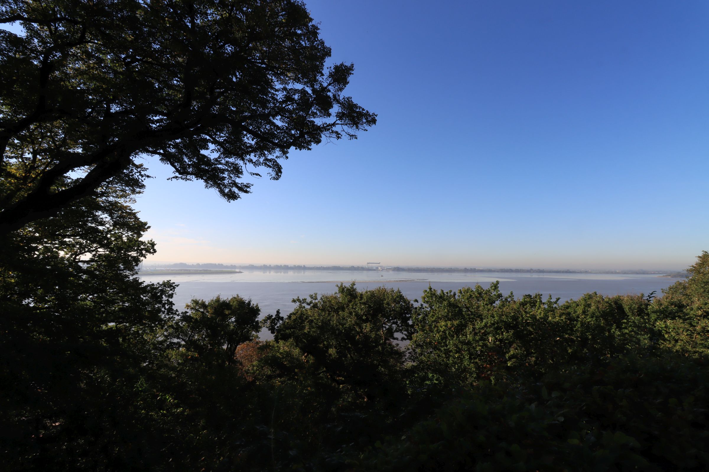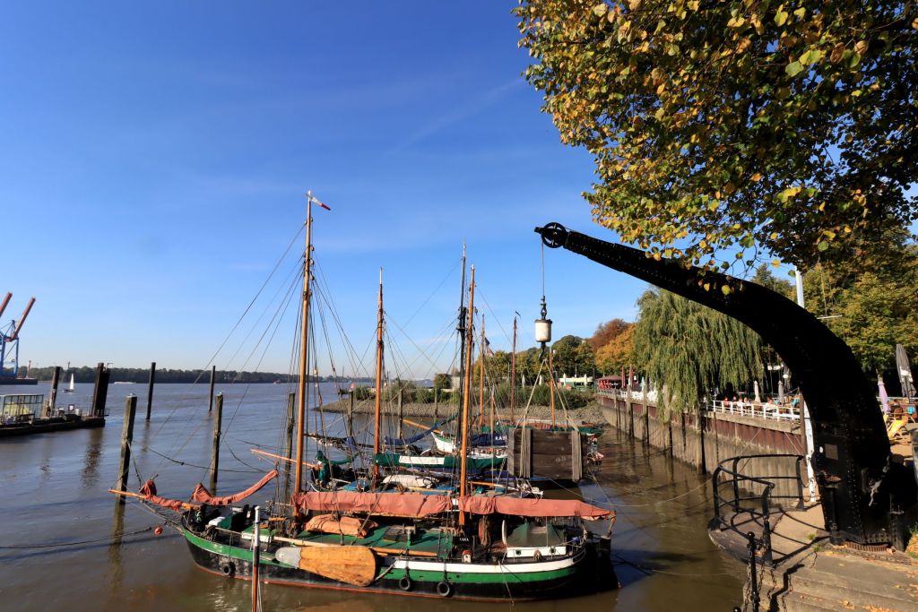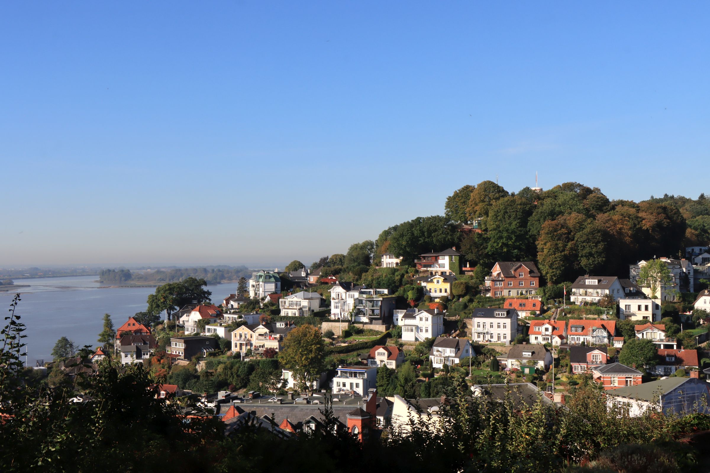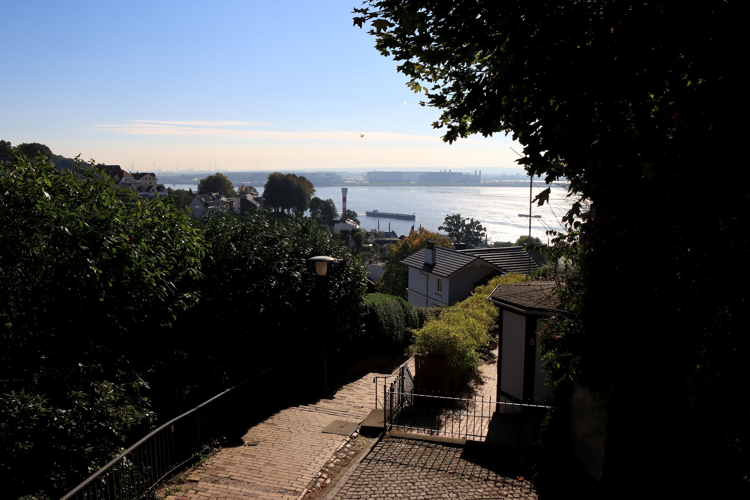 Am nächsten Morgen, das Hotelfrühstück gab es für mich bereits um 7:30 Uhr, war es überraschend frisch draußen. Klar, wir hatten ja auch schon Oktober. Um 9.00 Uhr gab’s das neue Handyticket und die Fahrt ging raus nach Blankenese. Ich war vor Jahren schon mal hier und denke jedesmal, ich bin in einer anderen Welt. Noch viel mehr dörflicher Charakter, aber mit S-Bahn Anschluß. Mein erster Weg führt mich in den Baurs Park. Hier gibt es eine schöne Aussicht vom Kanonenberg, auf die Elbe, die Lufthansawerft und das Alte Land auf der anderen Elbseite.