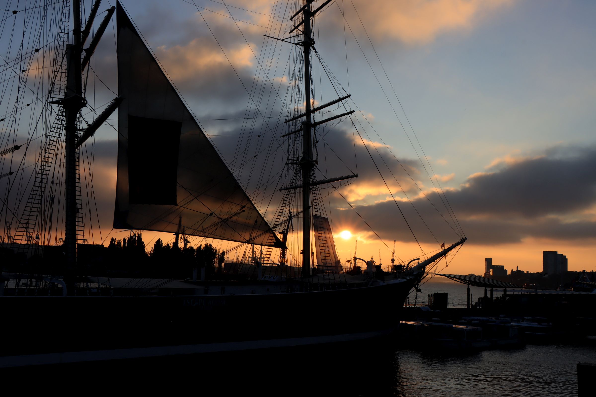 Zwischen Binnenhafen, Elbphilharmonie, Überseebrücke und Elbpromenade gab und gibt es jede Menge Fotomotive bis hin zum Sonnenuntergang mit dem Wahrzeichen Hamburgs, dem 1896 gebaute Großsegler, der Rickmer Rickmers. Nur mit dem Waffel essen hat es nicht mehr funktioniert, ich war zu spät dran, weil das Cafe um 17.00 Uhr zu machte. Der nächste Morgen das gleiche Ritual, Frühstück, HVV Tageskarte via Handyticket und ab zu den Landungsbrücken. Heute sollte es mit der Hafenfähre zum Museumshafen nach Oevelgönne gehen.