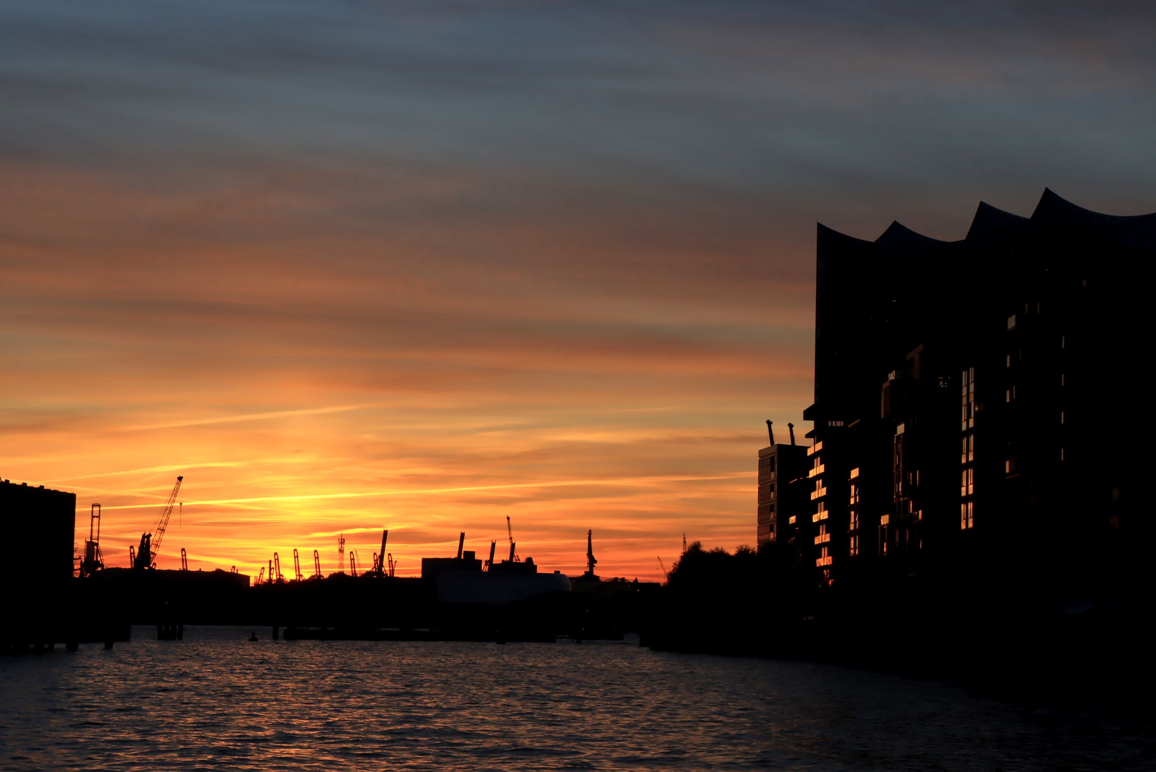 Ja, auch an dem Nachmittag war der Himmel wieder fotogerecht blau und selbst die steife Briese lies sich gut aushalten. Den letzten Abend wollte ich dann nochmal mit einem Sonnenuntergang beenden. Vom Hotel ging es in den Grasbrookhafen in der Hafencity, so lange bis die Sonne am Horizont verschwunden war. An diesem Tag war ich durchweg froh, die etwas dickere Jacke an zu haben, es war (erwähnte ich das schon) Oktober.