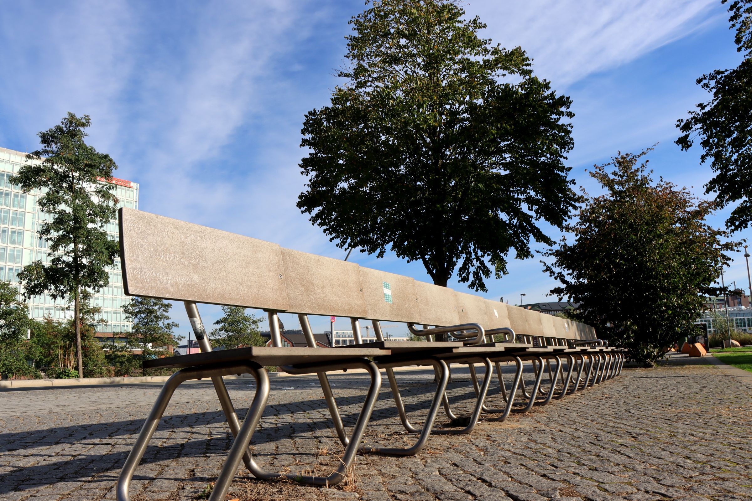 Vor der Abreise am nächsten Morgen habe ich noch eine Runde durch den Lohsepark, gleich neben meinem Hotel, gedreht. Erzählt hatte ich euch schon beim letzten Mal davon. Ich staune immer über diese Andereinanderreihung von Einzelsitzen zu einer Endlossitzbank. Und ganz fotogen zeigt sich schließlich die Ericusspitze. Tschüss Hamburg und mal sehen, vielleicht komme ich ja schon 2022 wieder. Bilder auch von diesen drei Tagen gibt es wieder bei bei Flickr und Google Photos.
