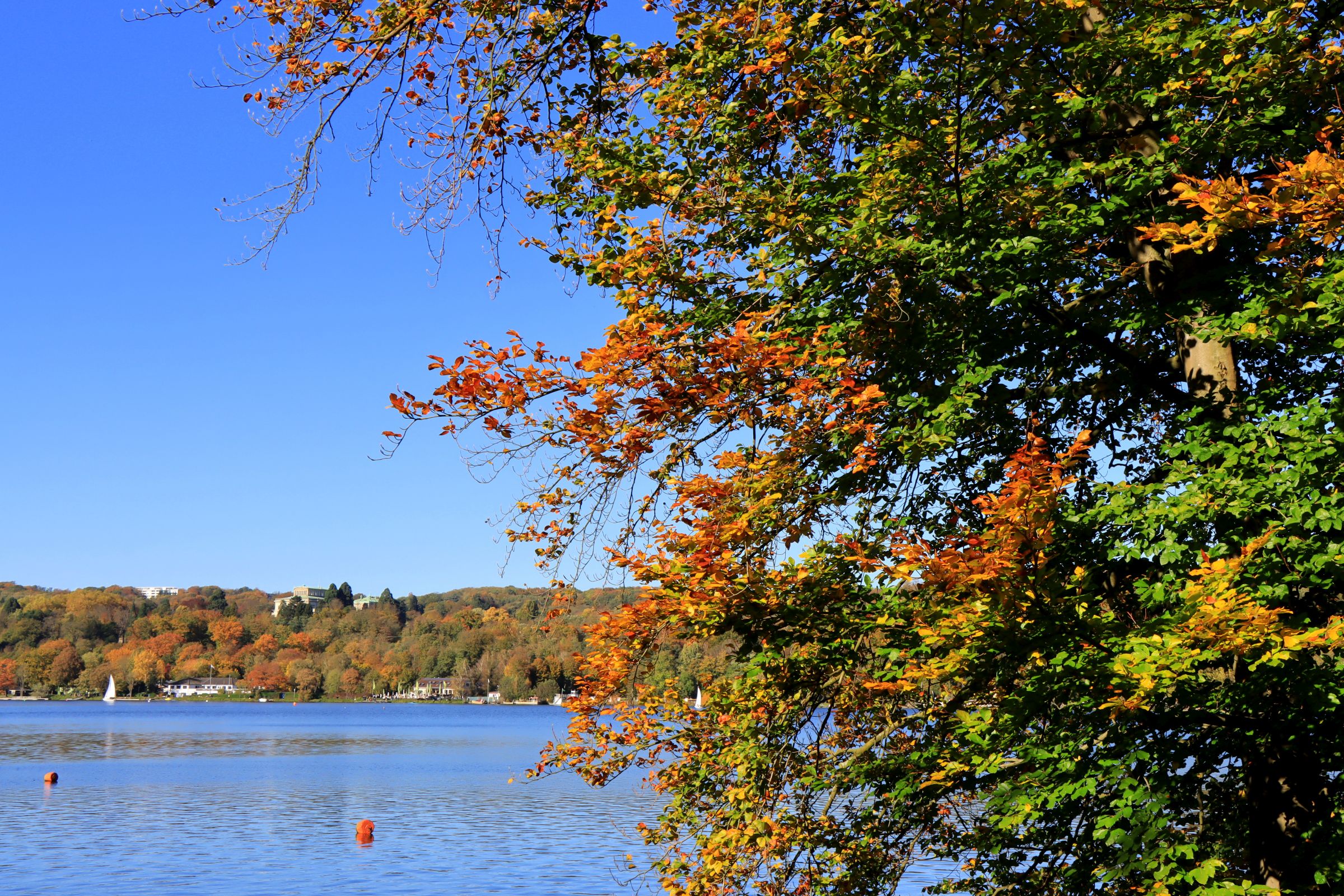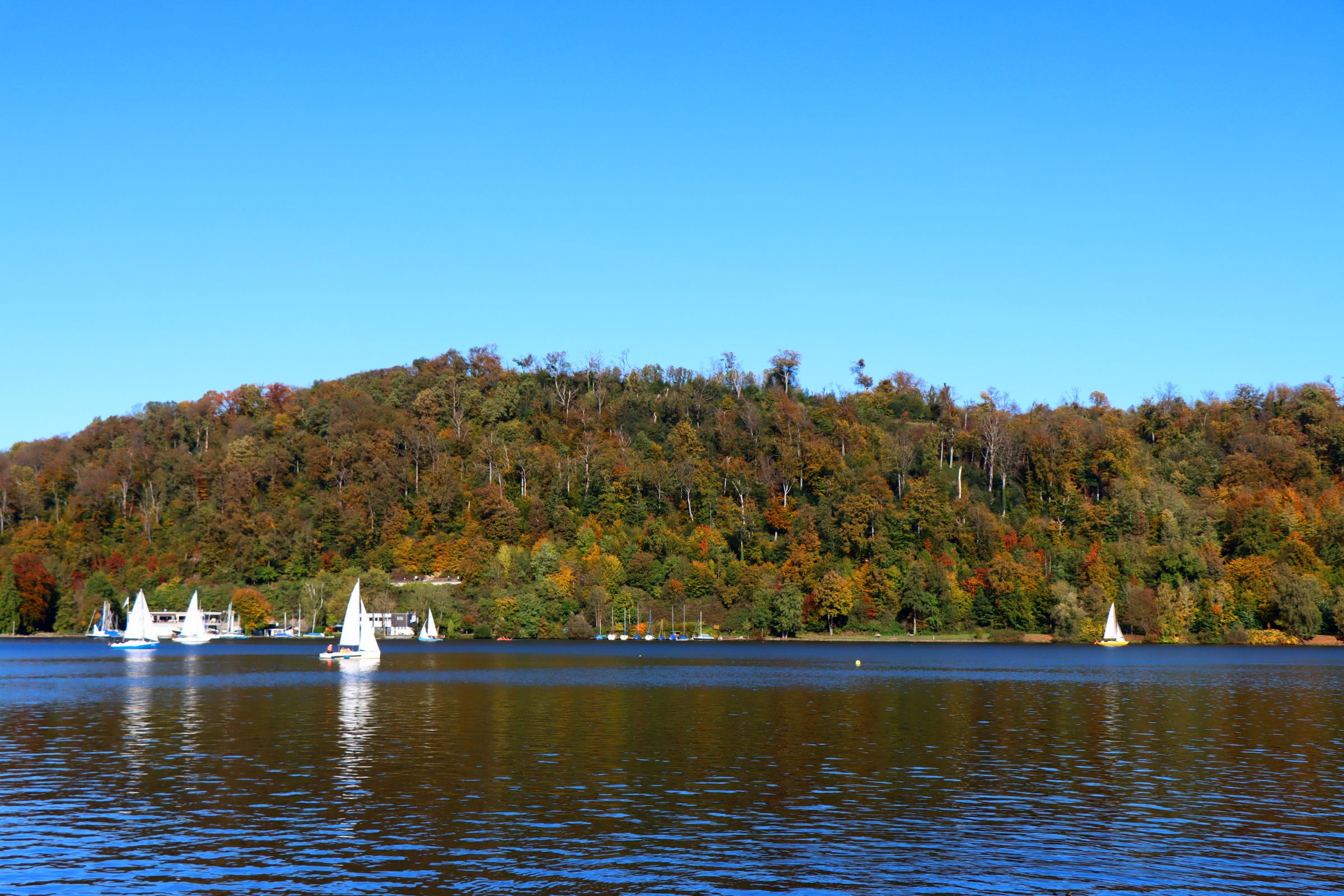 Genau so habe ich im Jahr 2016 einen Blogbeitrag übertitelt. Kaum zu glauben, daß das schon wieder 5 1/2 Jahre her ist. Damals war es im April, die Bäume waren weitgehend kahl. Drei Jahre später, im Juni 2019, habe ich eine Runde mit dem Rad um den Baldeneysee gedreht. Mitten im Sommer waren die Bäume natürlich grün. Aber jetzt habe ich es endlich mal im Herbst geschafft, das eine Bild (siehe oben) zu machen.