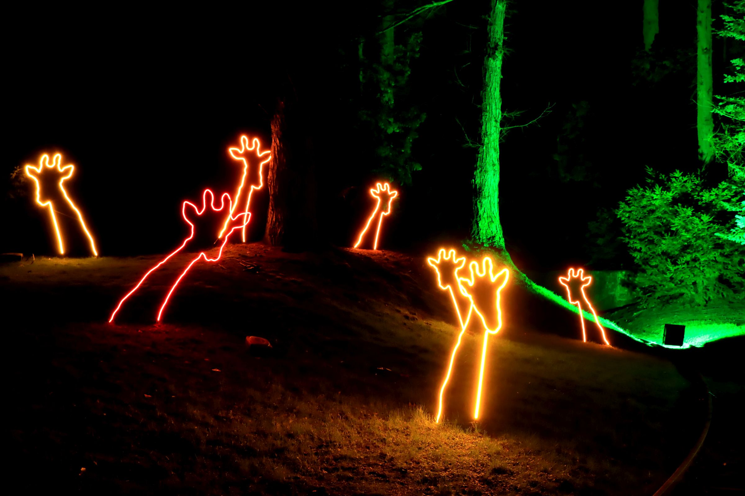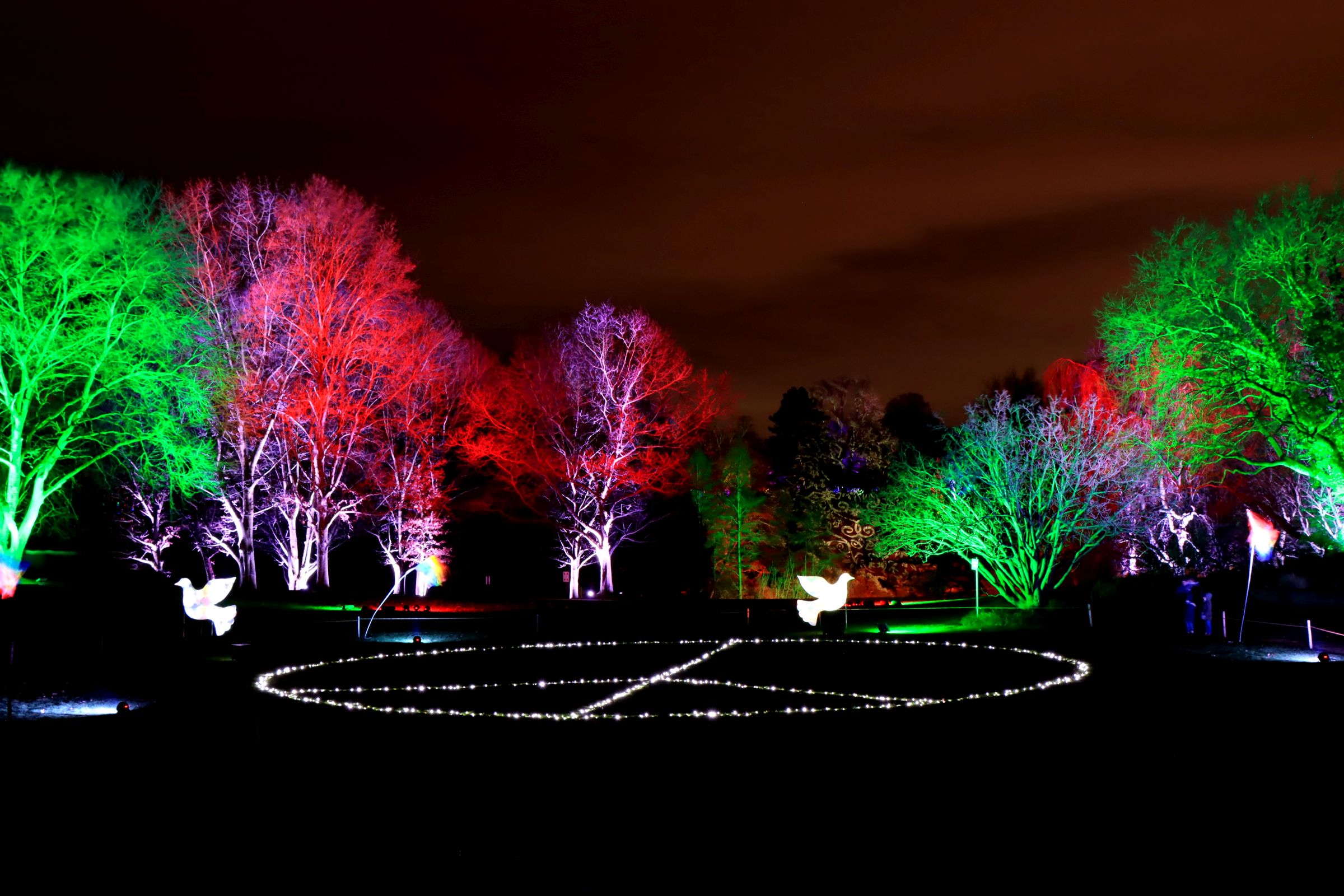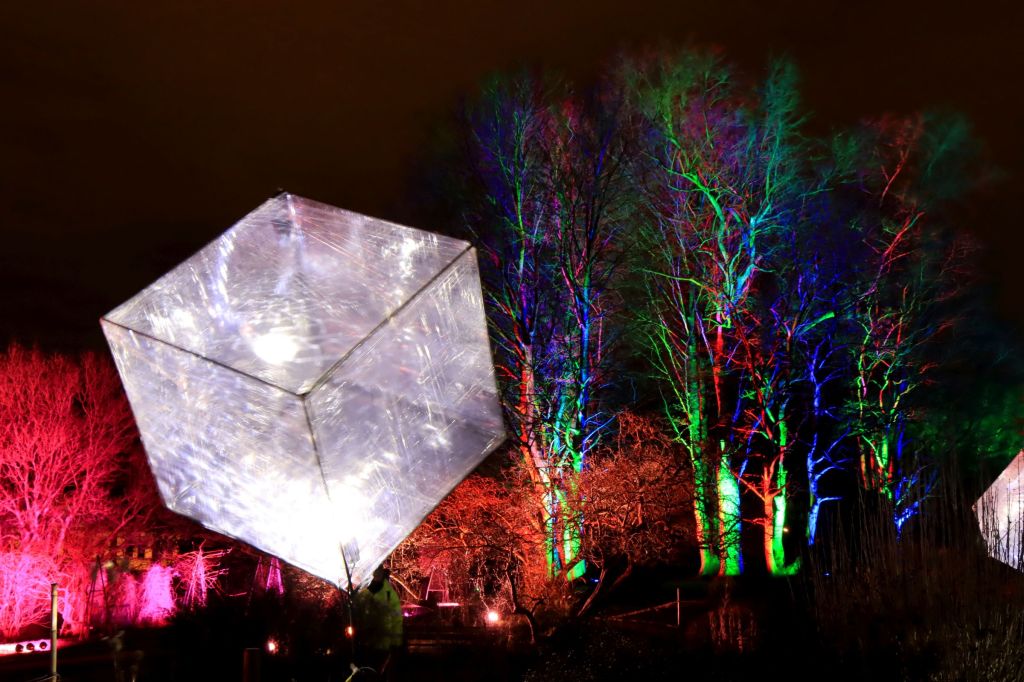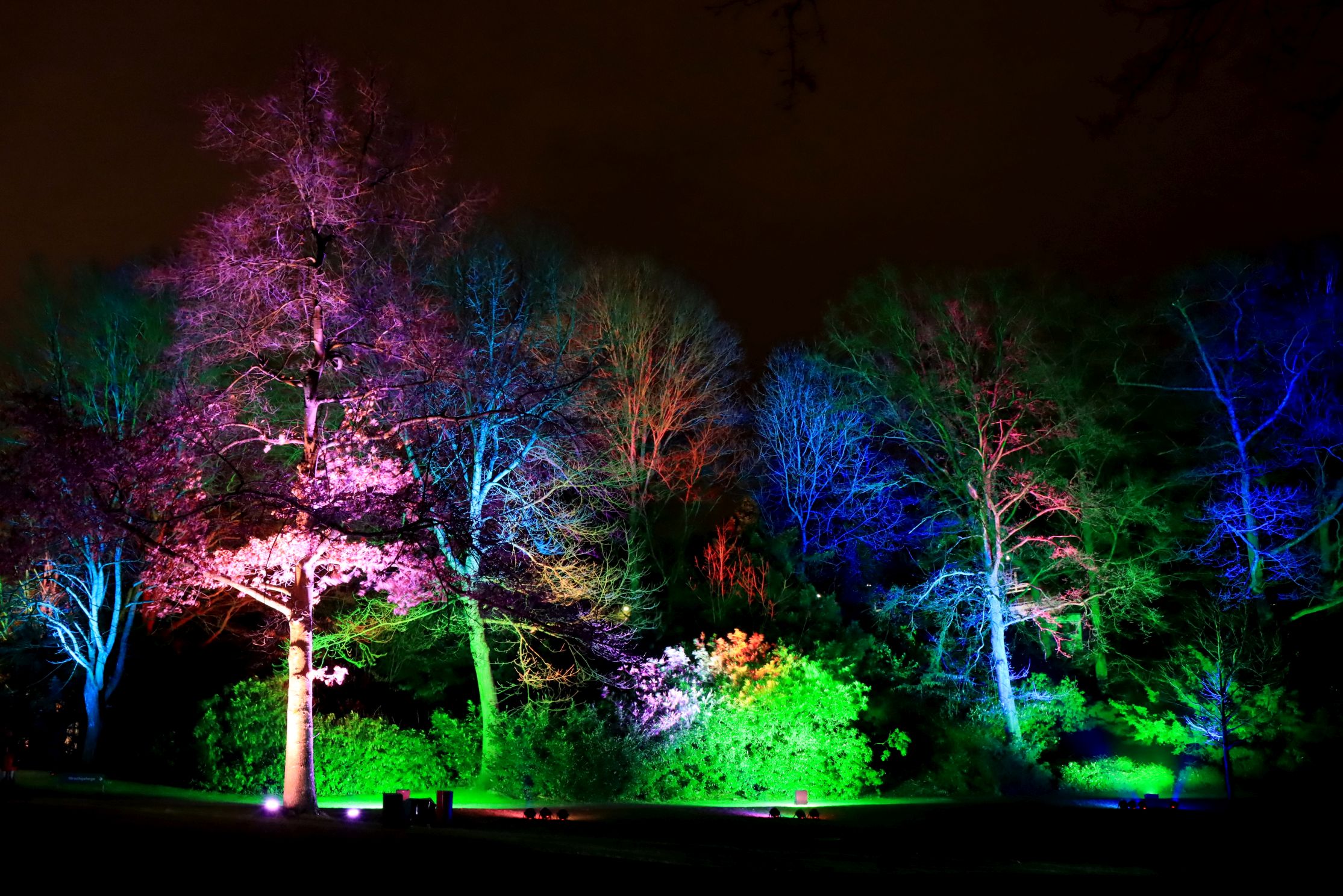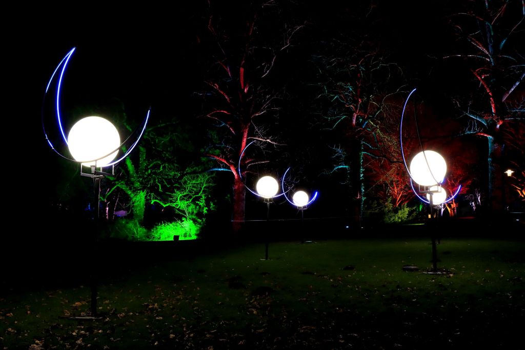 Ich halte mich so gut es geht, fern von kleineren Ansammlungen und warte auch gerne mal einen Moment, wenn es sich knubbelt. Insbesondere von den Food Ständen halte ich mich fern, ich bin zwar in aber nicht zum Essen hier. 😉 Die Macher des Parkleuchtens haben dazugelernt und haben die eine oder andere Aktion mit Bändern abgesperrt und auf Schildern gebeten die Bänder nicht zu übersteigen. Zumindest da wo ich war, schien das ganz gut zu funktionieren. Für den Rest sorgte dann der deutlich sichtbare Ordnungs- und Sicherheitsdienst.