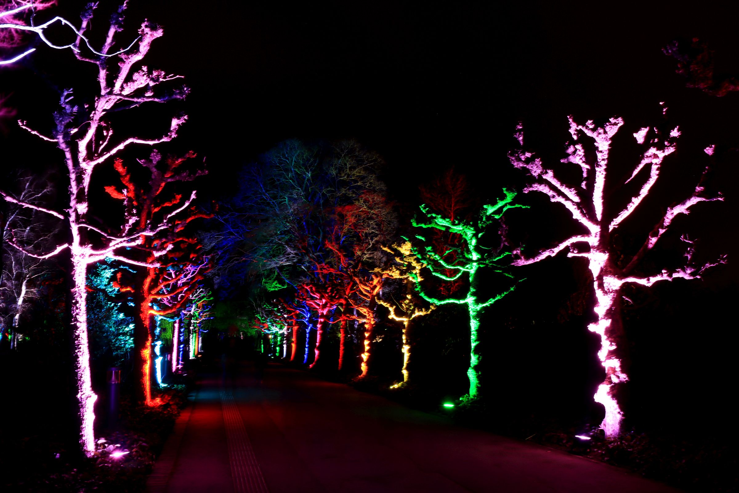 Eigentlich hatte ich gar nicht vor die 4,5 Stunden (17.30 – 22.00 Uhr) auszureizen, aber die Zeit vergeht dann doch wie im Fluge. Und wie jedes Jahr versuche ich mich auch wieder auf der Lindenallee, dieses Mal mit langer Belichtungszeit, so daß die Besucher (fast) im Dunkel der Nacht verschwimmen. Als ich den Hintereingang wieder erreiche ist es tatsächlich schon 21.50 Uhr geworden. Kein Wunder, daß ich doch ein bisschen Hunger verspürte. 🙂