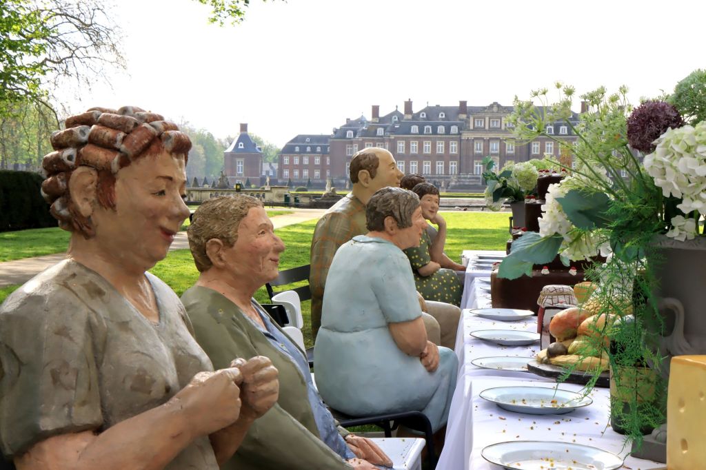Ein Teil der Alltagsmenschen hatte sich bereits an der Kaffeetafel niedergelassen und feierte Geburtstag, den 1.000’ten. Moment, zeigte die steinerne Torte tatsächlich die 1.000? Ach natürlich, es geht um die 1.000 Jahrfeier der Stadt Nordkirchen. Darauf einen Kaffee und ein Stückchen vom Betonkuchen bitte. Während die Damen und Herren feiern, bin ich erstmal rüber zum Schloss. Den Gästen nach zu urteilen wurde dort an dem Samstag geheiratet. Also flugs rüber auf den wunderschönen Schlosshof, bevor die Hochzeitsgäste selbigen gleich bevölkern.