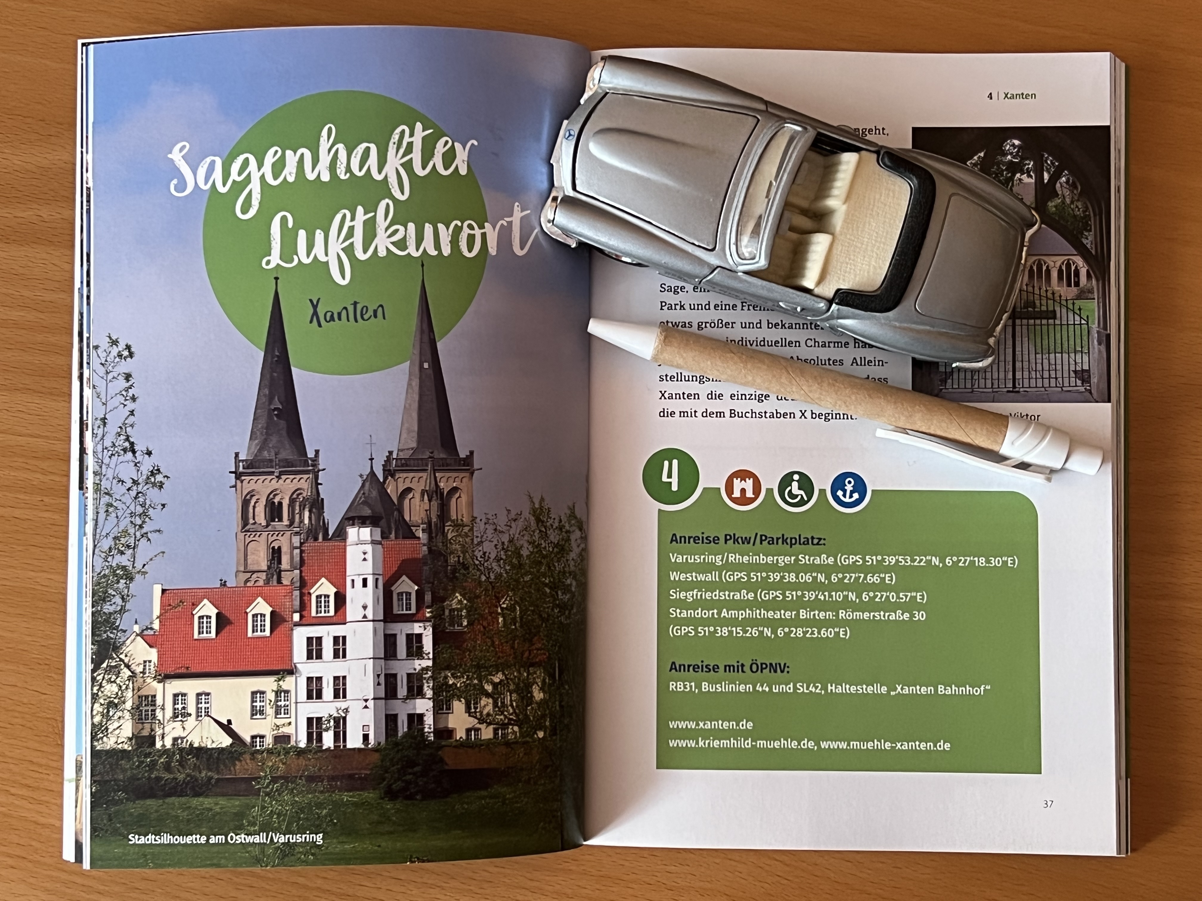 Insgesamt 23 historische Orte von Kleve am nördlichen Ende bis zu Erkelenz und Zons am südlichen Zipfel des Niederrheins werden hier beschrieben. Und wieder bin ich überrascht, daß ich einige dieser Orte auch selbst schon einmal besucht habe. Dazu gehören z.B. Xanten, Kempen, (Krefeld) Linn, Zons (Blogbeitrag folgt), Moers, Orsoy oder Rees. Aber es geht nicht nur um die großen Orte, sondern auch um die, von denen man sonst nicht so oft liest. Hättet ihr gewußt wo z.B. Götterswickerham oder Krudenburg liegen?
