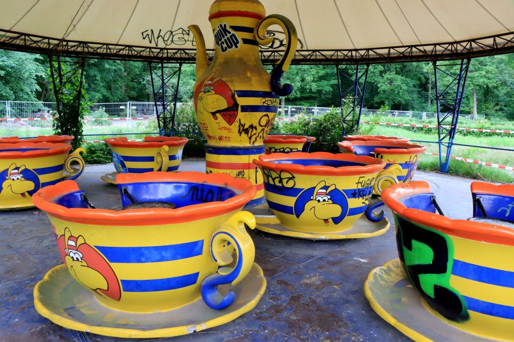Der Folgetag startet wieder außerhalb, dieses Mal im Plänterwald, denn ich möchte mir nach 2016 ansehen, was sich im Spreepark getan hat. Der ehemalige (und einzige) Vergnügungspark der DDR, 1969 als „Kulturpark Plänterwald“ zum 20. Geburtstag der DDR eröffnet, wird sukzessive in einen grünen Park umgewandelt. Einiges wird abgebaut, anderes wie z.B. das Riesenrad wird saniert und wieder aufgebaut. Dazu sollen Picknickplätze, Cafés und Erholungsflächen kommen. Aktuell ist wirklich nicht viel zu sehen. Reste der alten Wasserbahn, kleinere Gebäude, die kurz vor den Verfall stehen und die Achterbahn, in der noch immer ein Zug bereit zur Abfahrt steht. Bleibt abzuwarten, wann neues Leben in den Spreepark kommt.