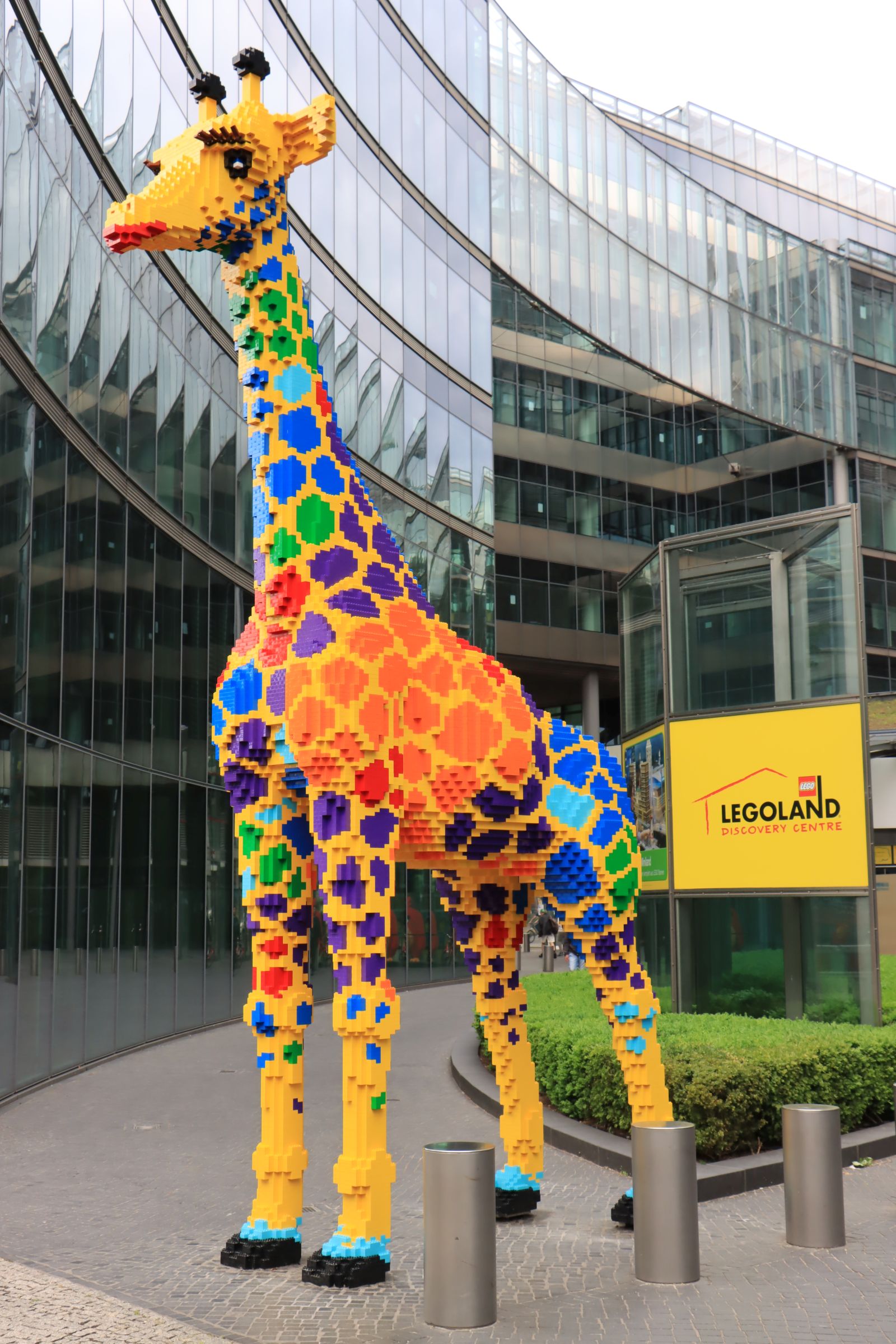 Auf dem Weg zurück habe ich noch einen Blick auf den aktuellen und weitgehend renovierten Teil der East Side Gallery geworfen (rund um den ehemaligen Mauerstreifen herrscht schon seit längerem rege Bautätigkeit) und ich bin am Potsdamer Platz über eine Ausstellung gestolpert, welche „Die Deutschen des 21. Jahrhunderts“ heißt. Überdimensional große Gesichter sollen den Wandel der deutschen Gesellschaft in den vergangenen Jahrzehnten zeigen. Verschiedene Hautfarben, aber ganz andere Art, hat auch die neue 6 Meter hohe Lego Giraffe wenige 100 Meter weiter am Sony Center. 42.000 Steine waren für ihren Bau zusammen zu stecken. Auf meinem Weg zurück ins Hotel streifte ich noch das Goethe Denkmal im Tiergarten und den Reichstag.