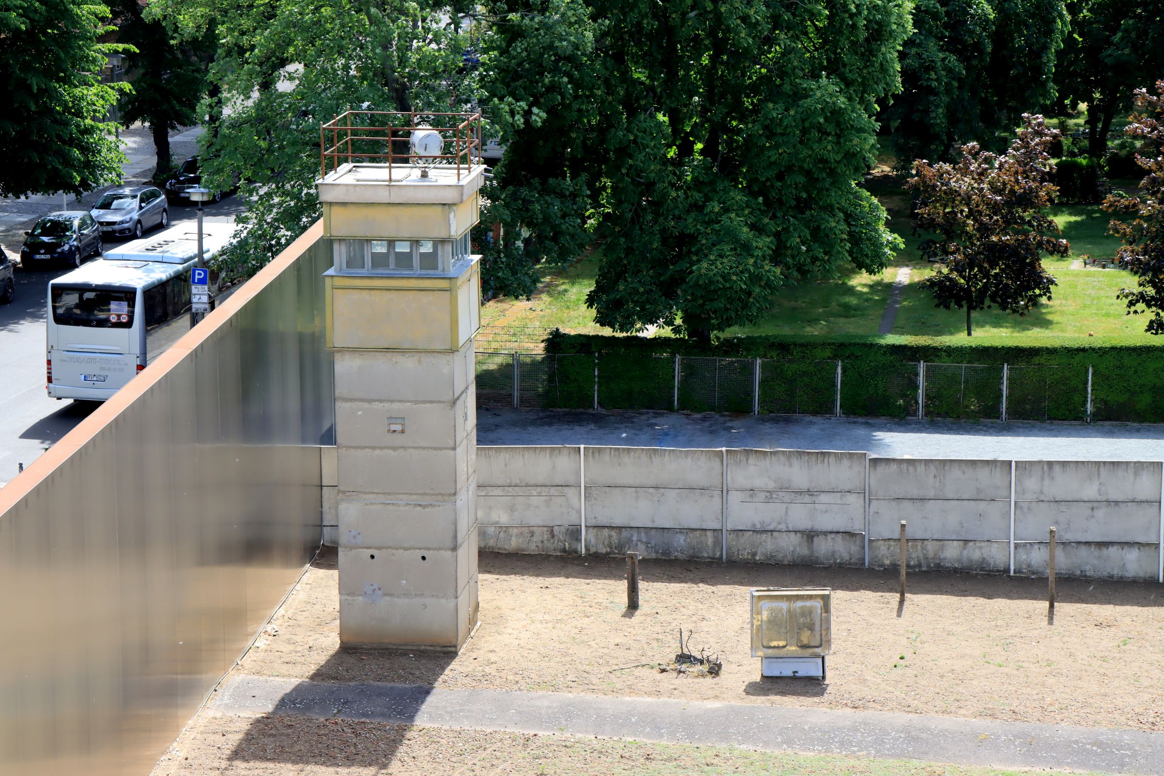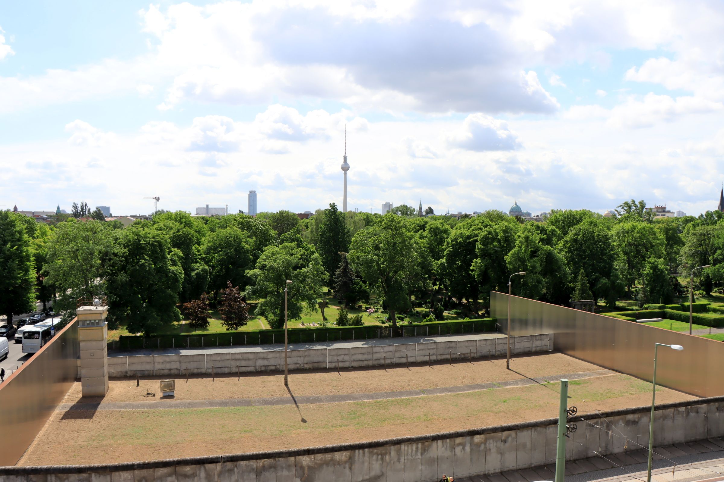 Man kann sich heute kaum mehr vorstellen, daß ein Friedhof deshalb nur von engsten Angehörigen betreten werden durfte. Da die Gedenkstätte Berliner Mauer (wie gesagt einen Steinwurf entfernt) dieses Mal geöffnet hatte, habe ich zumindest die Gelegenheit genutzt, die Aussichtsplattform zu erklimmen. Der über den Sophien-Friedhof verlaufende Grenzabschnitt (schon wieder mitten über einen Friedhof) steht seit 1990 unter Denkmalschutz. Für das Museum selbst hatte ich keine Zeit mehr, ist aber für meinen nächsten Besuch vorgemerkt.