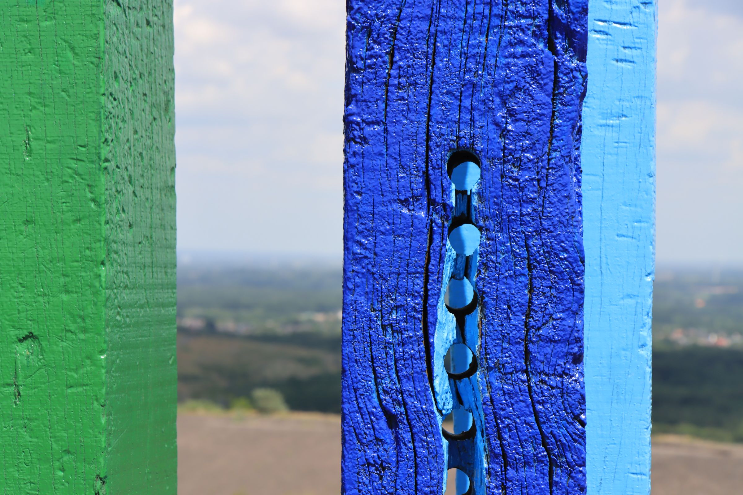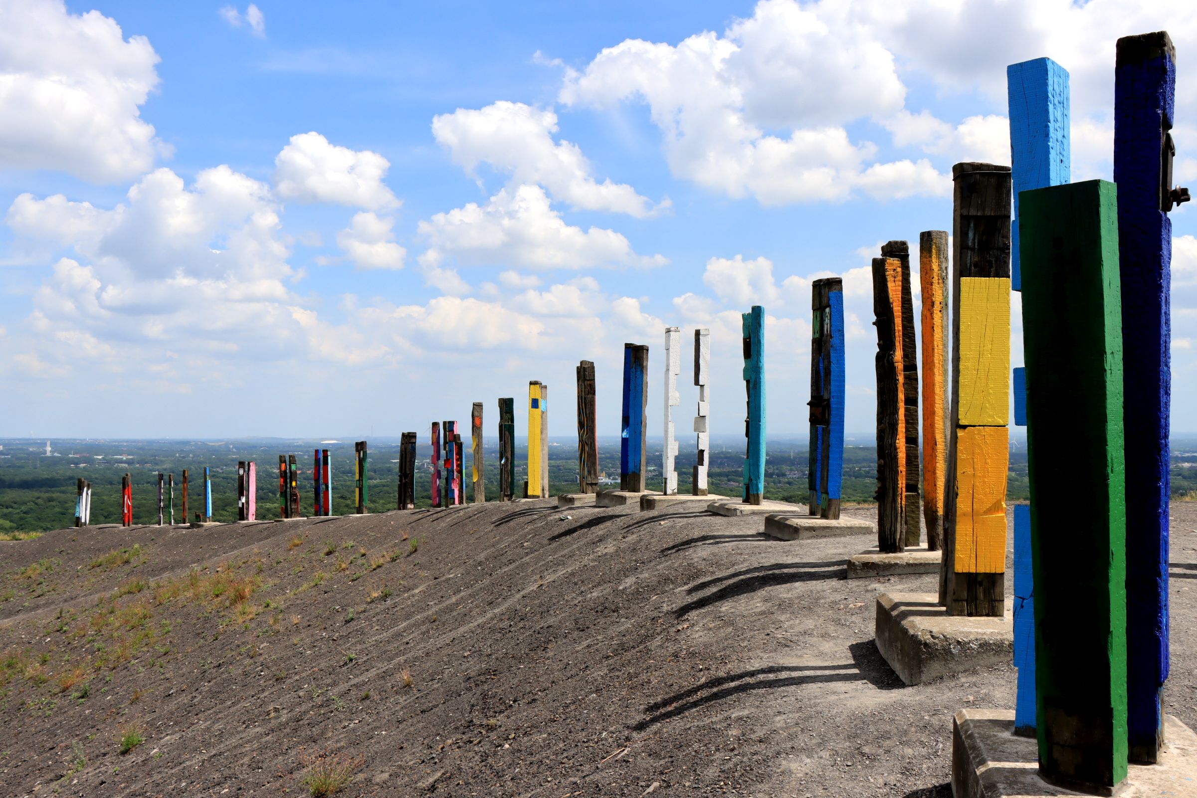 Beim Aufstieg etwas ins Schwitzen gekommen, war ich also mal wieder auf der Halde Haniel. Wie es der Zufall will, fast auf den Tag genau ein Jahr nach meinem letzten Besuch. Die Bilder gleichen sich verständlicherweise, aber die Totems sind ja auch sehenswert. Außerdem sind die mutwillig beschädigten Steelen mittlerweile auch wieder repariert. Na ja und die Aussicht auf das Ruhrgebiet lohnt ja sowieso.
