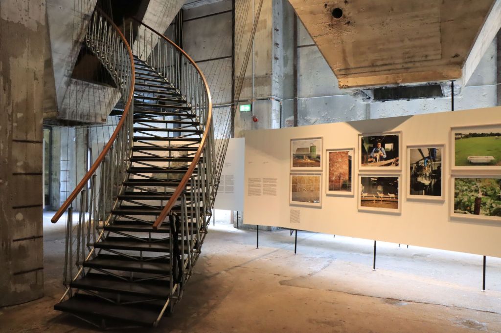 Gegen 16.00 Uhr ist auf den Parkplatz A1 der Zeche Zollverein noch ausreichend Platz Ich starte, nach einem gemütlichen Gang über das Gelände, um kurz vor 17.00 Uhr in der Mischanlage der Kokerei Zollverein. Dort läuft die Ausstellung Beyond Emscher. Ich sag mal so, man muß das Ruhrgebiet schon mögen, denn die Emscher ist auf den Bildern (bewußt) fast nie zu sehen. Es geht um Wohngebiete und Wanderarbeiter, um Häfen und (Bauern-)Höfe. Manchmal ist es auch der verwackelte Straßengraben oder ein Platz im Nirgendwo. Es ist eine Dokumentation des Emscherumbaus und ich denk noch so, es ist eben Kunst, einen Bildband würdest du dir von den Bildern aber nicht kaufen, doch plötzlich liegt er da und nein ich habe ihn nicht gekauft.
