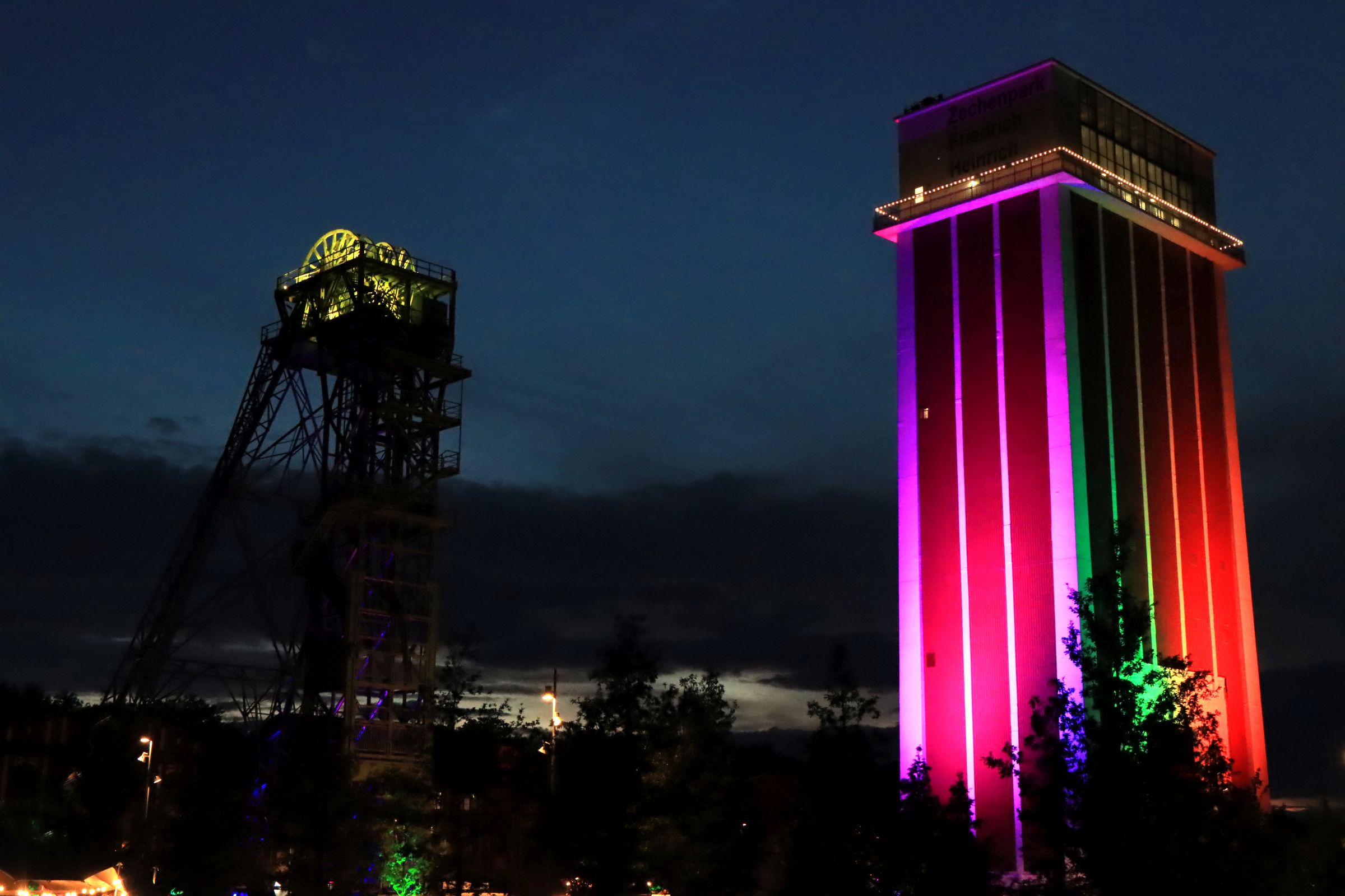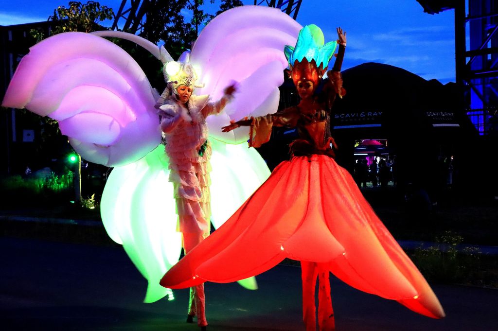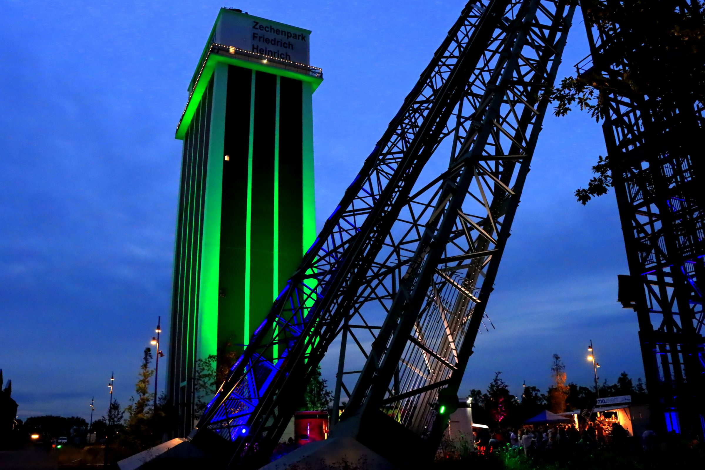 Nach soviel Eindrücken habe ich erstmal ein bisschen Pause gebraucht. Genutzt habe ich diese, in dem ich auf die A42 gefahren und selbiger bis zum Ende gefolgt bin. Genauer nach Kamp Lintfort, zum Zechenpark Friedrich Heinrich. Ihr erinnert euch, Landschaftsarchitekturpreis. Hier war die Ausbeute an Action etwas geringer, auf der Bühne schallte mir Livemusik entgegen, ein Walking Act trug tolle beleuchtete Kleidung und der Förderturm wurde zu späterer Stunde mit einer tollen Lichtperformance beleuchtet. Zum Feuerwerk, das wohl gegen 0.00 Uhr stattfand war ich bereits wieder zu Hause.