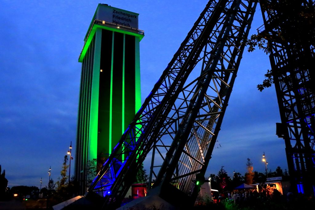 Ehrlich gesagt, hatte ich kurz überlegt, ob ich die Extraschicht wieder besuche, denn ich muß ja zunächst vom Niederrhein aus anreisen. Nach coronabedingten zwei Jahren ohne Veranstaltungen dieser Art war die Euphorie ein bisschen verflogen. Aber es hat sich gelohnt, sich wieder dafür zu entscheiden. Ich hatte mir vorgenommen nicht alles sehen zu müssen, sondern in aller Ruhe zwei Spielorte zu besuchen und mich gegen 23.00 Uhr wieder auf den Heimweg zu machen. Ausgesucht hatte ich mir die Zeche Zollverein in Essen und den Zechenpark Friedrich Heinrich in Kamp Lintfort, der 2022 zum ersten Mal dabei ist.