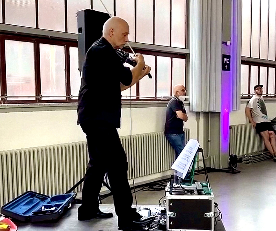 Noch mehr als hören, sondern gleich erleben konnte man den unmittelbar folgenden Auftritt von Violet Quartet. Auf vier elektrischen Geigen, eine in jeder Ecke der Halle, einem Fußpedal (ich glaube sowas nennt sich Loopmaster) und der Sängerin Anke Müller wurde ein Quadrophoniesound erzeugt, der mich mitgerissen hat. Als dann noch Wonderfull Word und Mad World, ein alter Tears For Fears Syntisound Klassiker, den ich schon aus meinem Kopf gelöscht hatte, gespielt wurde, war nicht nur ich absolut begeistert. Das kann man nicht beschreiben, das muß man hören. Hier findet ihr ein Beipsiel eines älteren Auftritts mit einem Sting Titel.