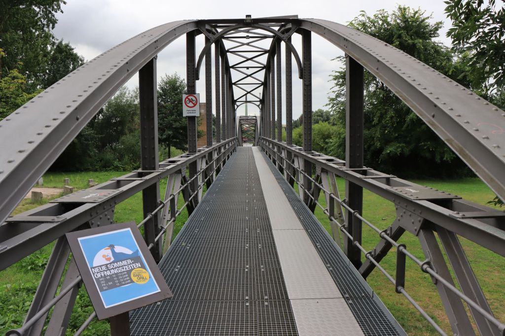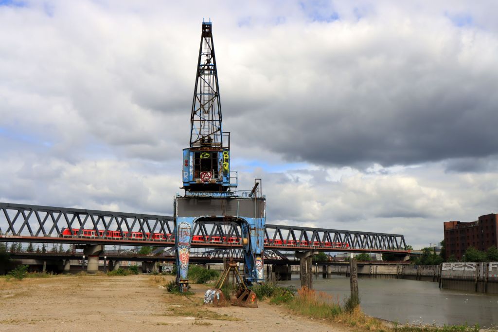 Das Ziel am nächsten Morgen lag östlich der HafenCity sogar östlich der Elbbrücken. Die U4 brachte mich bis zum (aktuellen) Endpunkt Elbbrücken, danach wurde es kurz ungemütlich. Vorbei an der Baustelle für den Elbtower (mit 244,80 m zukünftig das höchste Gebäude Hamburgs), über die recht laute Billhorner Brückenstraße und dann in den ruhigen Elbpark Entenwerder. Hierher verirren sich Touristen aktuell eher selten. Entenwerder war die einstige Zollstation für Binnenschiffe, die um 1997 dann zu einer Parkanlage umgestaltet wurde. Entenwerder ist eine Halbinsel mit Blick auf Elbbrücken und Hafencity im Westen und Industriekulissen am südlichen Elbufer und im Osten.
