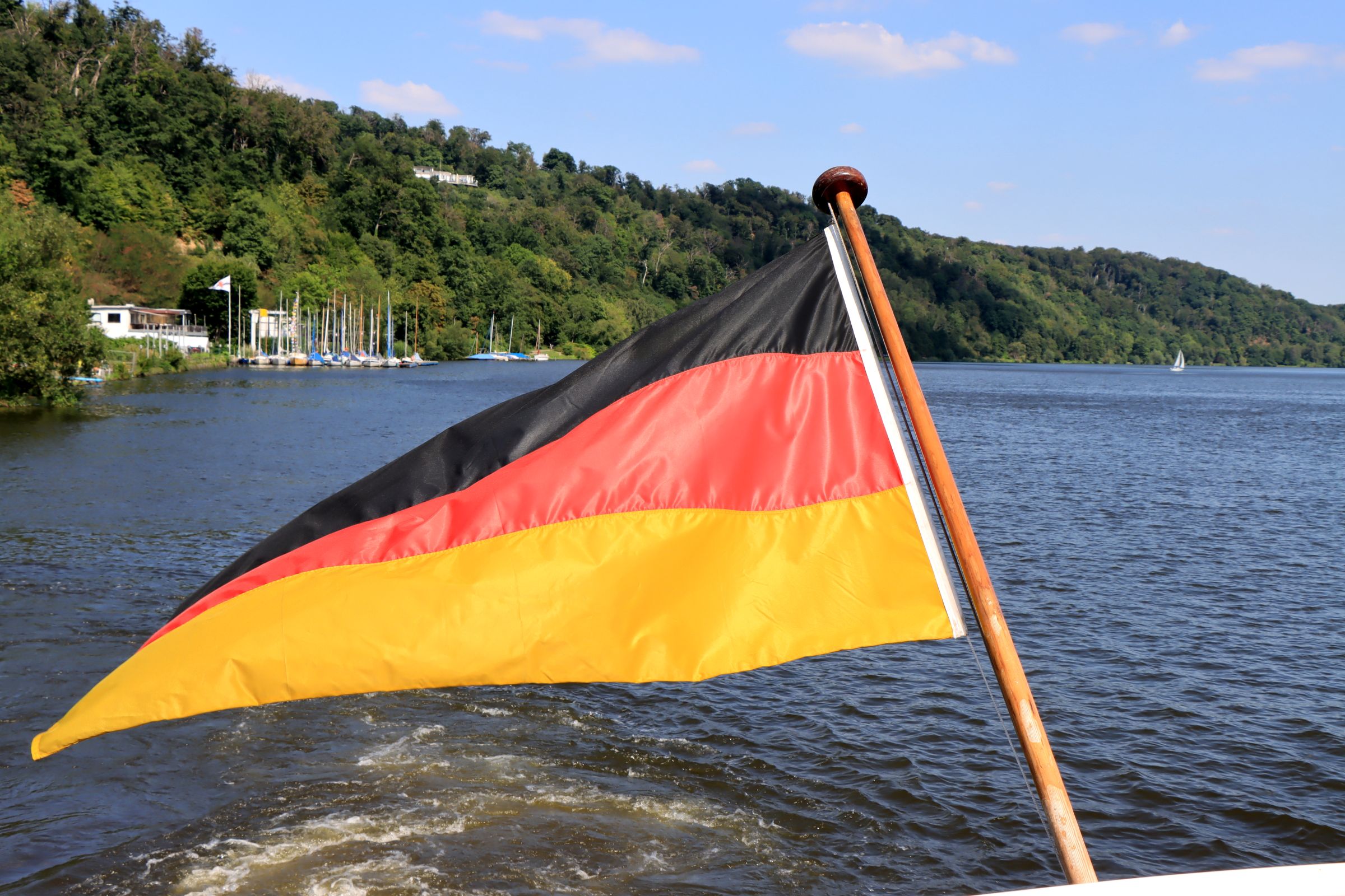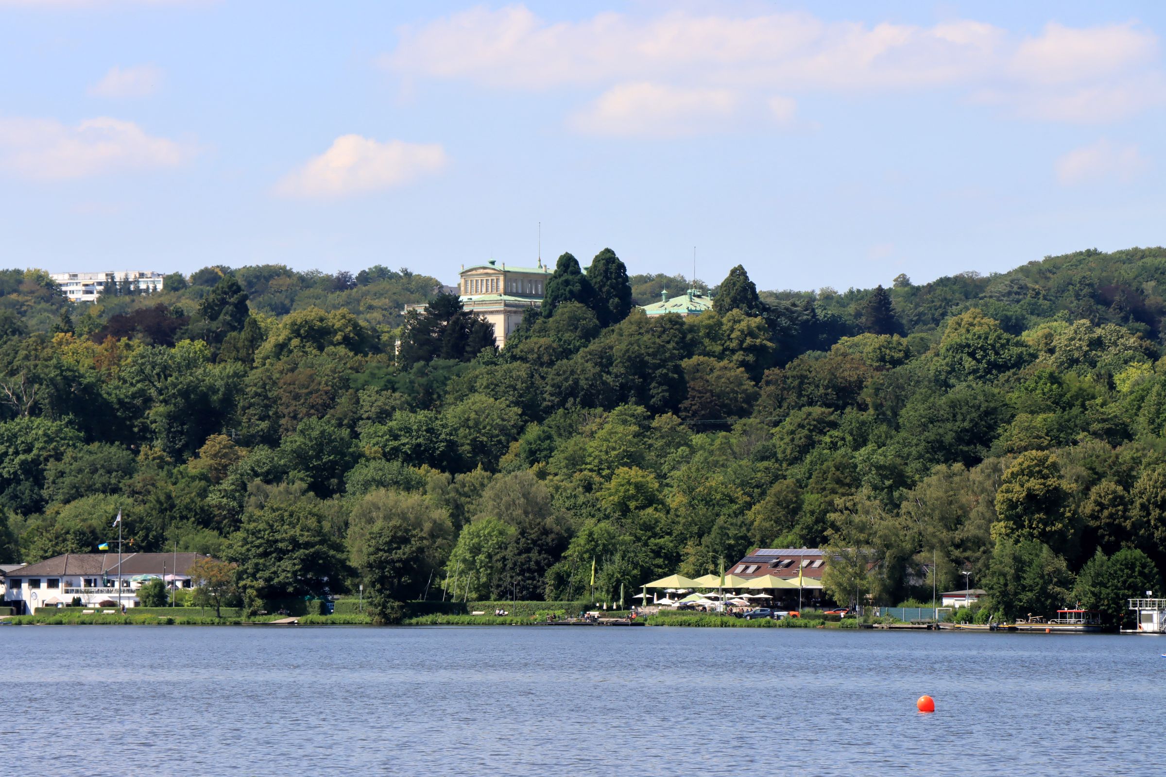 Also stand ich weiter am Ufer, blickte rüber auf die Villa Hügel und die Schiffe, die am Ufer gegenüber kreuzten. Eine Schifffahrt bei dem schönen Wetter, das hätte schon was, außerdem hatte ich ja noch genügend Zeit. Also habe ich den Weg in Richtung Haus Scheppen fortgesetzt. Entlang des Hardenbergufers sind es ca. 5 km, also eigentlich gar keine Strecke, aber mit der Kamera vor der Nase dauert es eben etwas länger. Als ich Haus Scheppen erreiche sind es noch gut 15 Minuten bis das nächste Schiff kommt.
