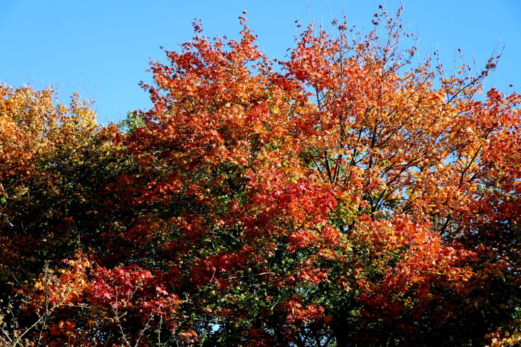 Natürlich kann es sein, daß ihr ähliche Bilder bereits 2017 an dieser Stelle gesehen habt, aber auch das erwähnte ich ja bereits, ich habe verschiedene Ziele gefühlt ein dutzend Mal besucht und fotografiert. Damit ist mein Terminkalender für 2022, abgesehen von Riesenrädern und Weihnachtsmärkten, aber auch leer. Möglicherweise ist das der letzte Blogbeitrag für dieses Jahr. Der November und damit der Jahresrückblick kommt in großen Schritten. Aber bis es soweit ist, erstmal Herbstfarben und ich schwöre, ich habe die Bilder nicht coloriert (bei einigen wenigen vielleicht am Kontrast geschraubt), das Laub war wirklich so farbig, da tanzten sogar die Strommasten.
