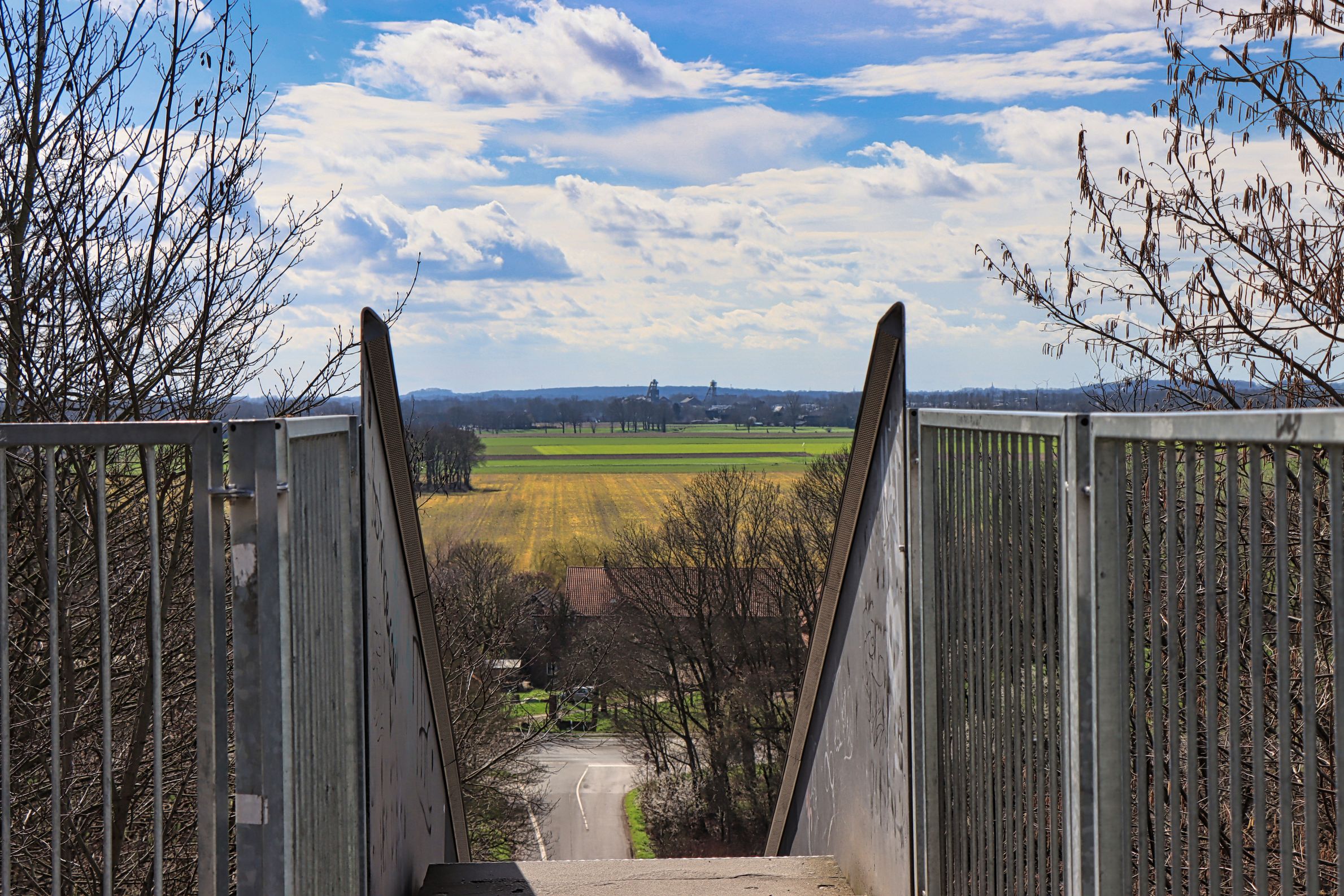 Es ist immer noch Aprilwetter im März und wenn sich die Wolkendecke dann doch mal öffnet, kann es so aussehen wie am letzten Wochende. Ich habe keine weiten Ausflüge gestartet, sondern war in den zwei regenfreien Stunden mal wieder auf der Halde Norddeutschland in Neukirchen Vluyn. Leider kann ich euch nicht viel neues zeigen. Oder wartet mal, vielleicht doch. Nicht nur, daß ein paar Gleitschirmflieger von der Halde schwebten, ich bin auf dem Weg nach unten mal hinter die Halde gelaufen.