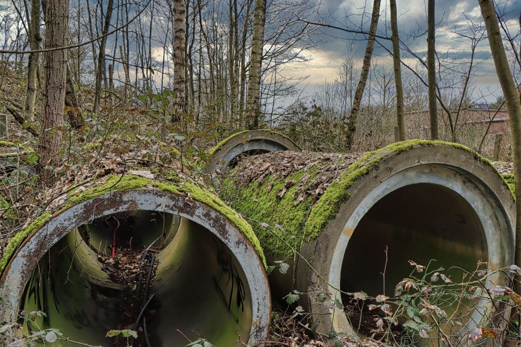 Komischerweise habe ich das noch nie gemacht. Hier befinden sich die Reste der Schachtanlage Norddeutschland, dem späteren Schacht Friedrich Heinrich III. Die Zeche Friedrich Heinrich (seit 2001 Teil des Bergwerk West) war das Bergwerk, auf dessen Fläche 2020 die Landesgartenschau stattfand. Ein paar alte Betonrohre im Wald, ein paar alte Gebäude, ein verfallenes Pförtnerhäuschen, mehr ist nicht geblieben von der Zeche Norddeutschland. Selbst der Förderturm, den man früher von der Halde aus sehen konnte, ist mittlerweile verschwunden.