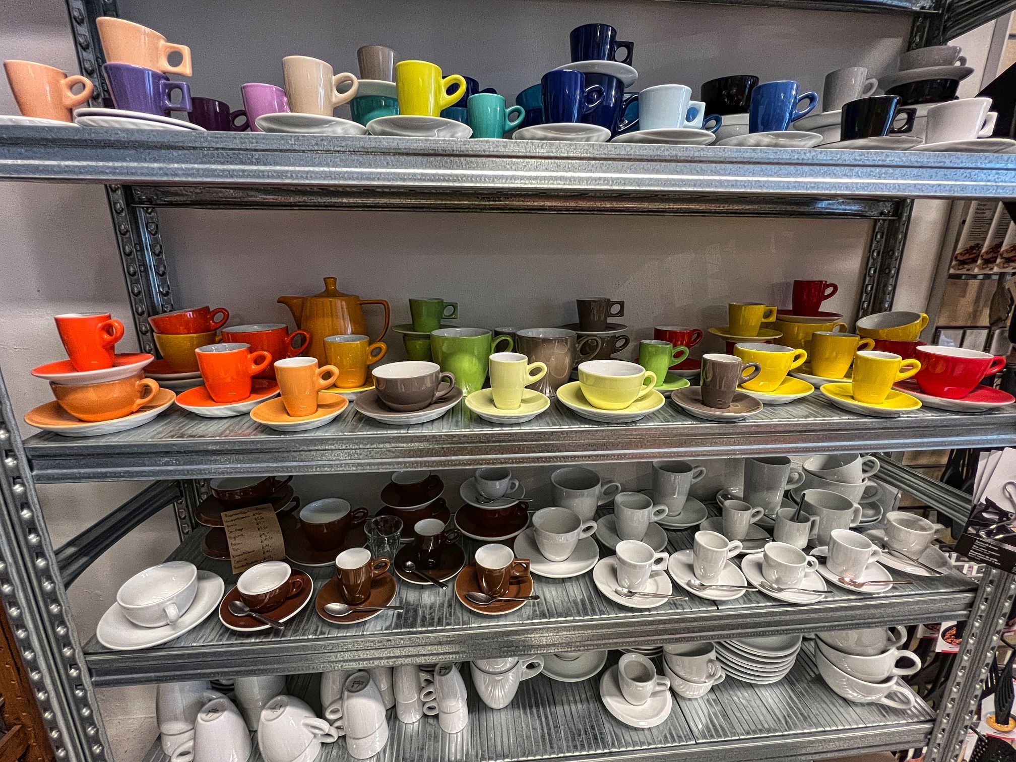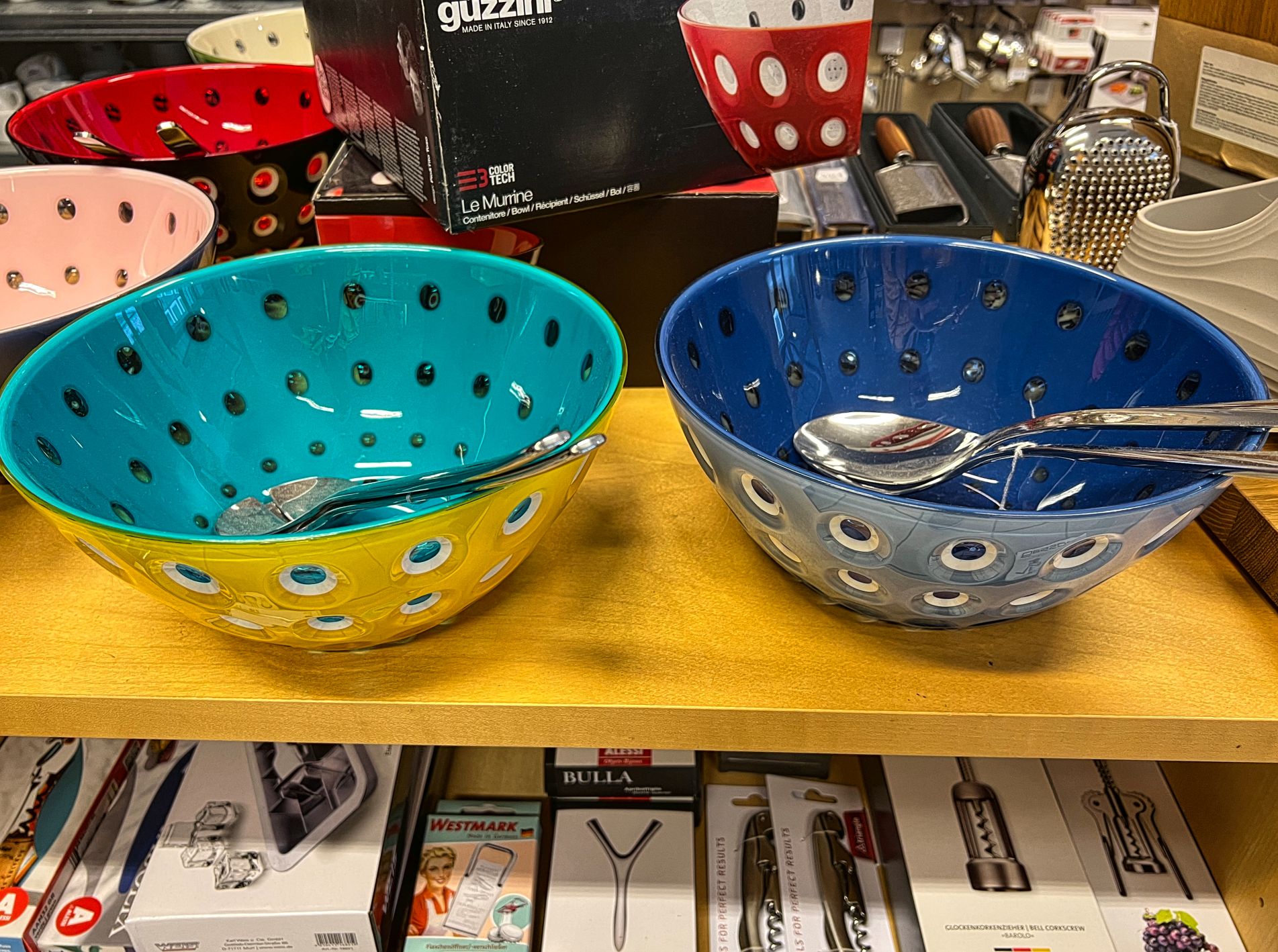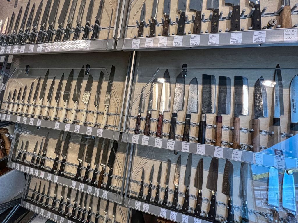 Nach so viel Kalorien besuchen wir ein Fachgeschäft für Küchenzubehör der besonderen Art. Töpfe, Pfannen genauso wie Tischzubehör und allem voran eine große Auswahl an Küchenmessern erwarten uns bei Cucinare. Der Inhaber läßt es sich nicht nehmen einen Espresso zu servieren. Wer wollte konnte sich gleich für die eigene Küche eindecken und zum Abschied gibt’s als kleines Giveaway, eine Minireibe und ein Schneebesen (als Schlüsselanhänger).