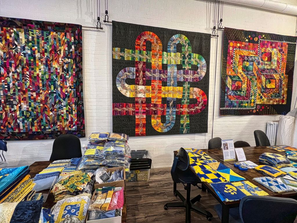 Auch ich habe mich für euch mal dort umgesehen und wenn ich ehrlich bin, bin ich schon so oft daran vorbeigefahren, aber ich habe nicht gewußt, was sich hinter den Mauern der ehemaligen Im Brahm Brotfabrik befindet. Nur das nachempfundene Schild mit dem fülligen Jungen weißt heute noch auf die Geschichte hin. Dort wo früher Brote gebacken wurden, belegt heute das Quilt-Studio von Claudia Pfeil einen großen Teil der Parterre.