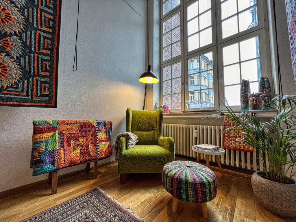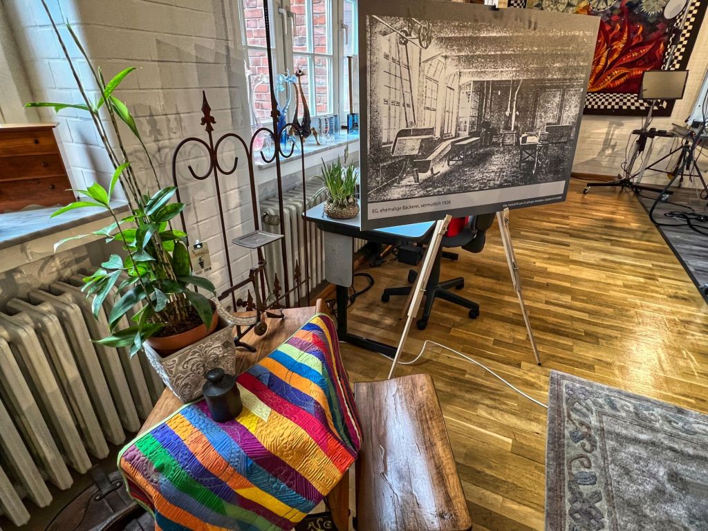 Heute befinden sich in den Gebäuden u.a. eine Quilt Galerie, ein Ausstatter für Baddesign, Künstlerateliers für Malerei, Porzelan- und Karamikkunst, die Taiji Qigong Akademie und ein Büro für Grafikdesign und Fotografie. Alle diese Atteliers waren am vergangen Wochenende im Rahmen von 650 Jahre Krefeld und unter dem Motto „Historie trifft Kultur, Kunst und Design“ für den Besucher geöffnet. Trotz ziemlich regnerischem Wetter, hatten sich eine Reihe interessierter Besucher eingefunden.