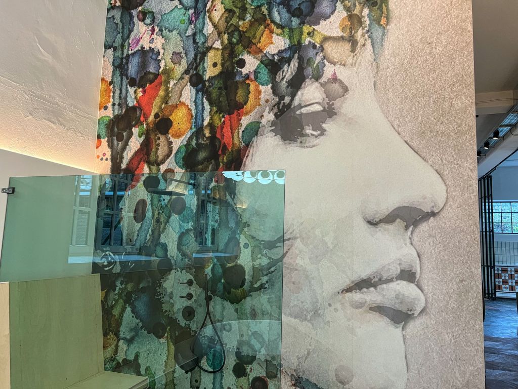 Darüber befinden sich die Ateliers für Keramik und Porzelankunst, die ihr vielleicht aus einem kleinen Laden namens ebenERDIG am Karlsplatz 7 in Krefeld kennt. Gegenüber ist die Mal-bar untergebracht und was mich besonders angesprochen hat, die Fotokunst von Delia Dickmann und Manfred Vogelsänger. Was ich abschließend noch brauche, ist so eine Dusche, wie auf dem Bild hier oben. Ein Bad vom feinsten. Ich hatte das Gefühl, der Gebäudekomplex war es wert gerettet zu werden. Diesen Beitrag findet ihr auch auf Krefeld650.de.