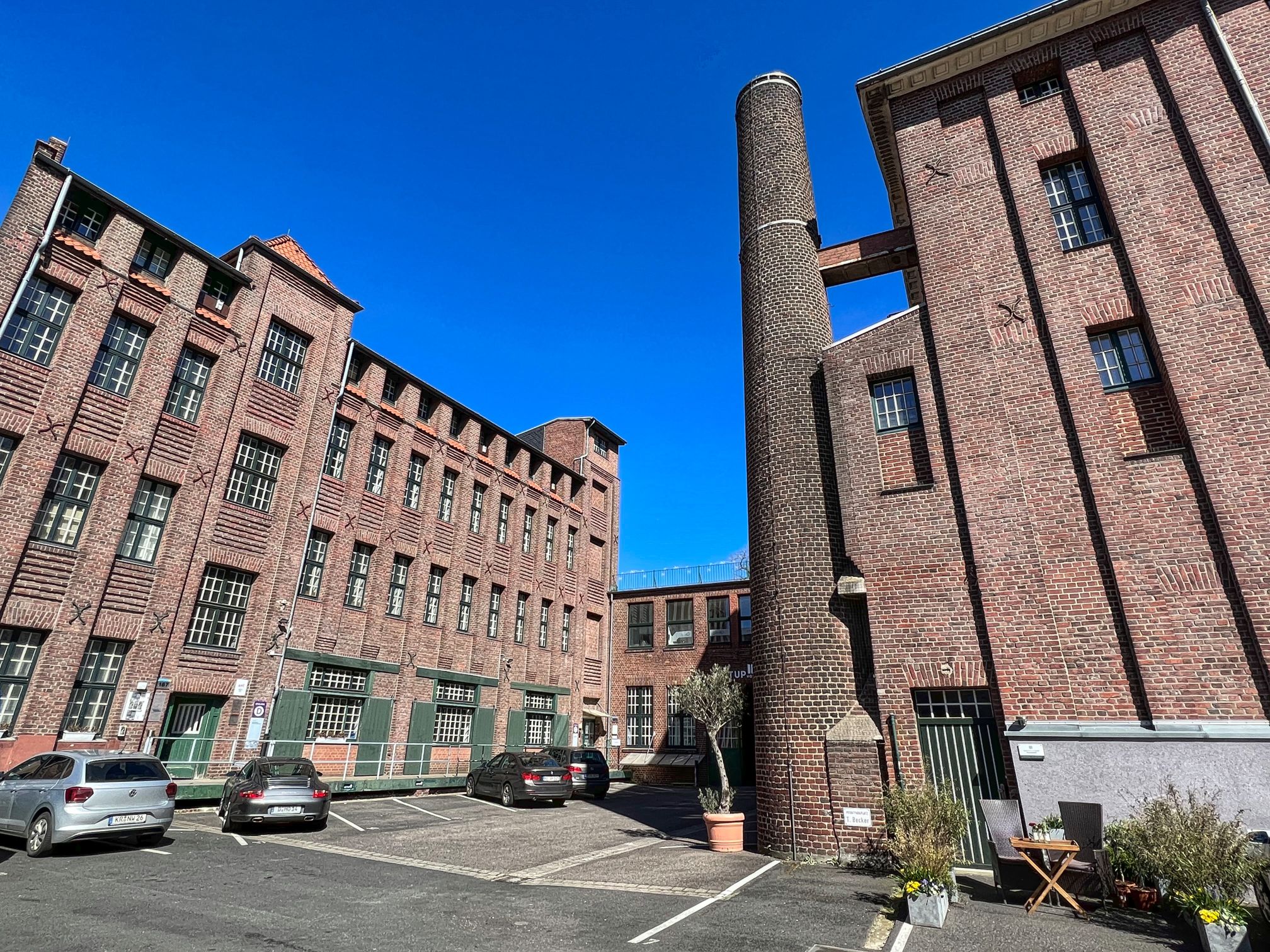 Erst ein Ministerialentscheid rettete das Ensemble. Zwischenzeitlich war ein Porschehändler hier eingezogen, hat einen Teil des historischen Innenlebens aus- und umgebaut und erst Mitte der 1980’er Jahre wurde der Gebäudekomplex schließlich in die Denkmalliste eingetragen. 1999 erfolgte die Übernahme durch die Wohnstätte Krefeld, 2019 Verkauf an die Fa. Paschertz Grundstücks GmbH.
