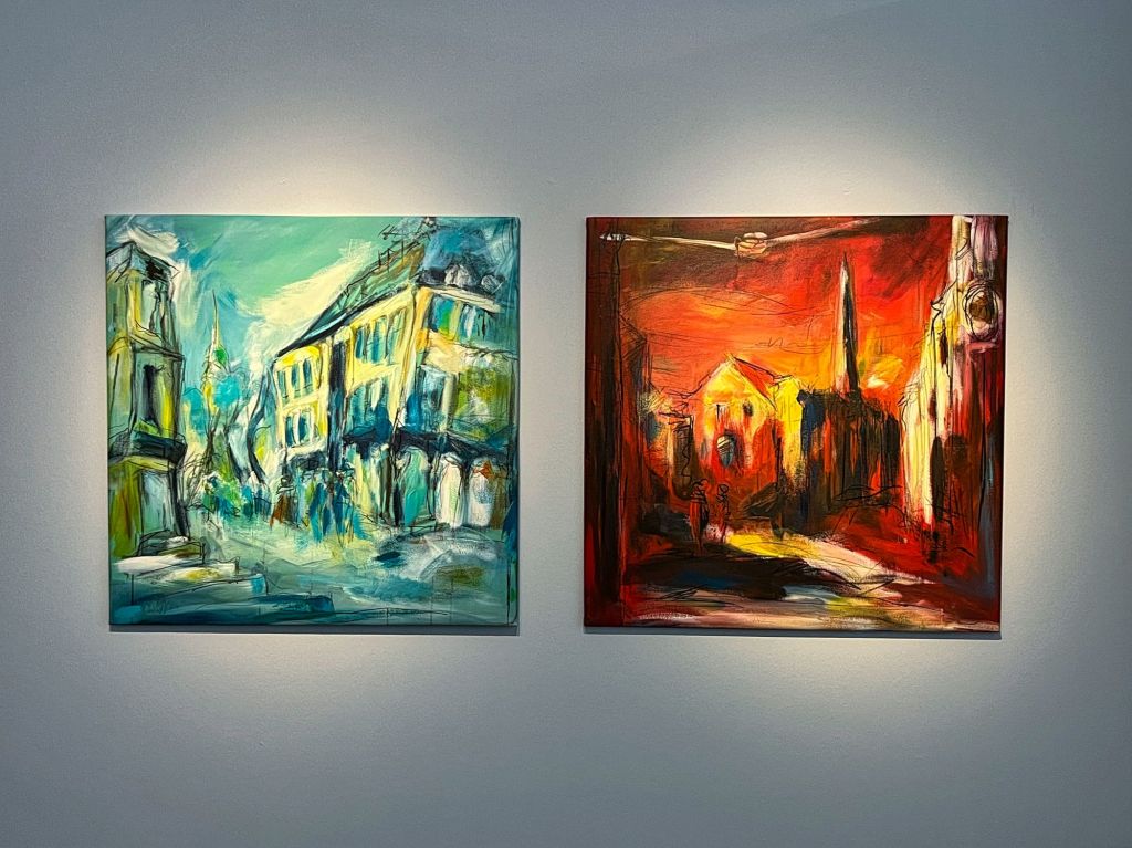 Nicht alles von damals existiert noch in seiner alten Form, aber Mauga Houba-Hausherr hat ihre Sicht auf die Orte von damals in neuen Bildern festgehalten. Während die alten Bilder manchmal sehr fein daherkommen, sind die neuen Bilder etwas abstrakter, teilweise sehr farbig aber nicht minder mit Leben gefüllt. Mauga zeichnet was sie fühlt und sieht.