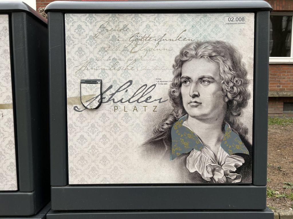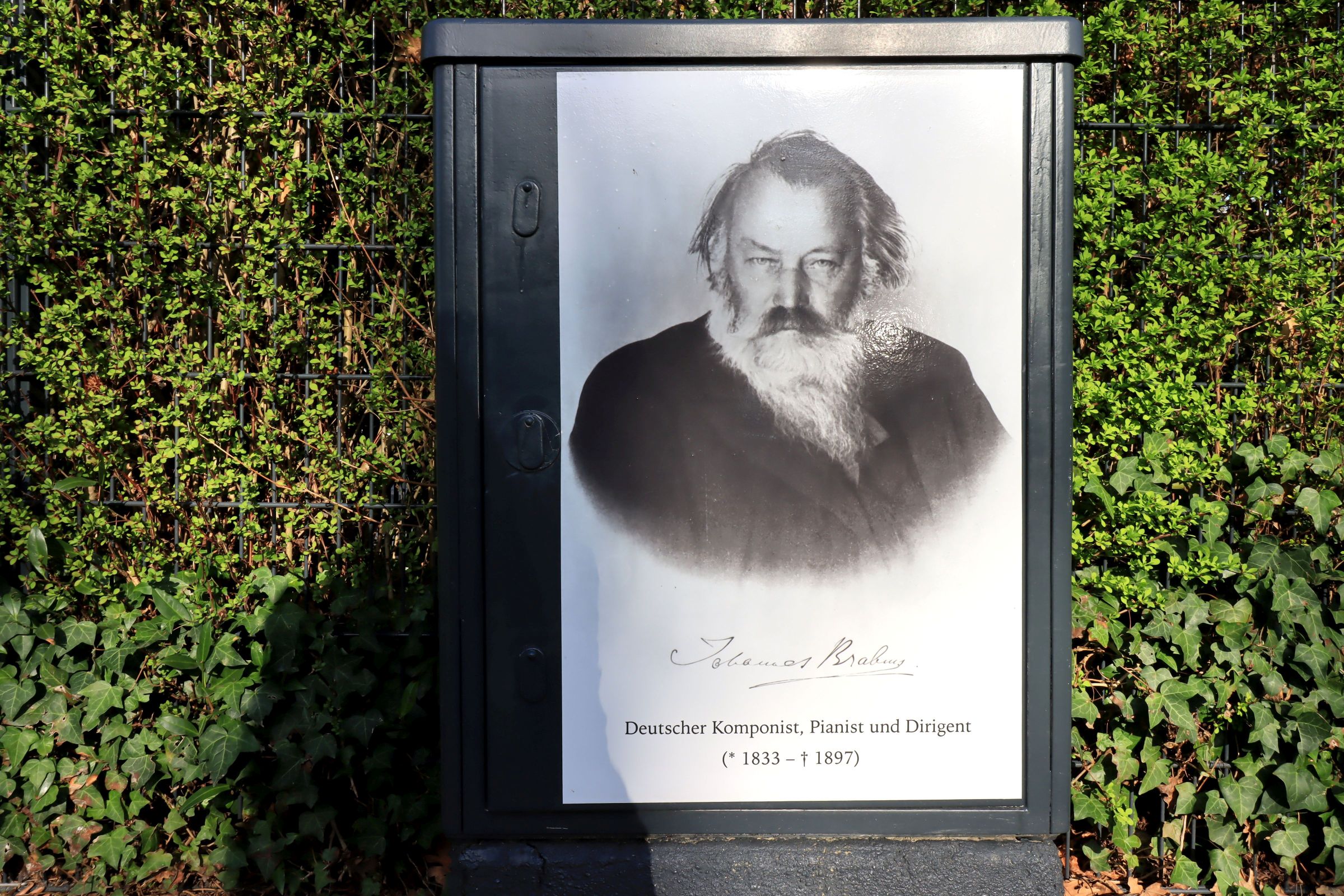 Einige Zeit später fiel mir dann ein Bild vom Straßenzug gegenüber, auf einem weiteren Verteilerkasten auf, außerdem ein Bild von Albrecht Dürer an der gleichnamigen Straßenecke. Neben dem Bismarckviertel gibt es in der Nähe das sogenannte Musiker- und Dichterviertel mit Straßen wie der Schiller-, Goethe- oder Lessingstr., der Brahms-, Richard-Wagner, Haydn-, Schumann- und der Mozartstraße.