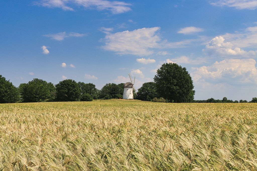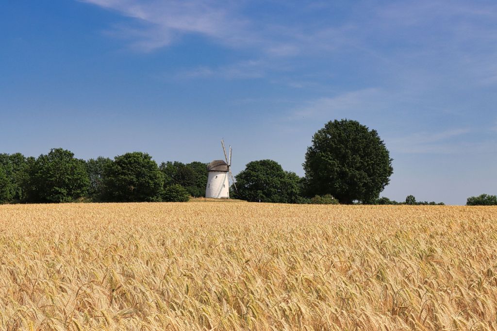 Aber noch interessanter sind die Felder rund um die Mühle. Sie veranlasssen mich immer wieder zu googeln, was da wohl gerade wächst. Als Stadtkind kenne ich vieles eben nur aus dem Supermarkt. Nach ein wenig suchen, kam ich zu dem Schluß, daß das Getreide auf diesen Bildern Gerste ist. Ihr meint, ich häte das früher schon mal gegoogelt? Ja stimmt, aber ich hattes es mittlerweile wieder vergessen. Man erkennt Gerste an den langen Grannen (diese dünnen haarartigen Dinger). Roggen sieht so ähnlich aus, hat aber kürzere Grannen und Weizen wächst weitgehend senkrecht und hat gar keine Grannen.