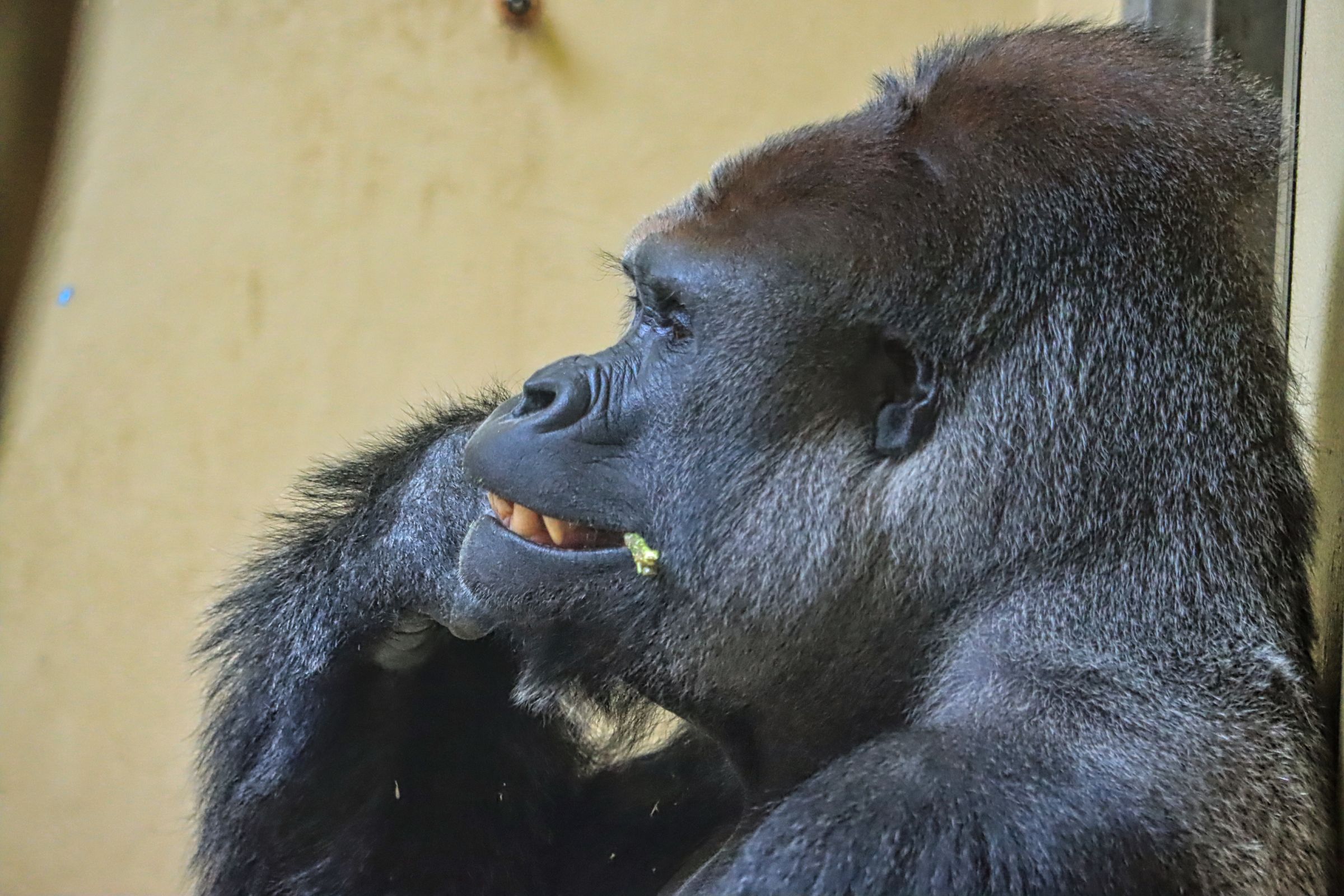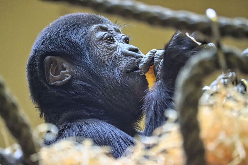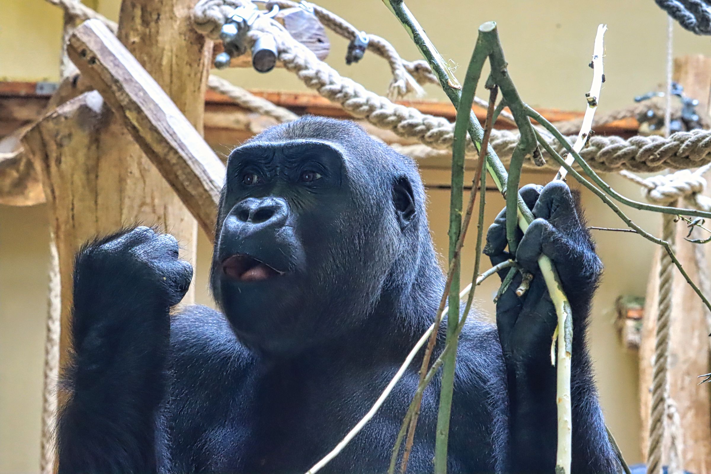 An der Stelle des alten Affenhauses geht es in Krefeld jetzt langsam an die Neugestaltung. Aktuell wird das Gorillagehege erweitert, was wochentags zu ein bisschen Baulärm führt. Vielleicht ist das auch der Grund, daß man die Gorillas z.Zt. des Öfteren drinnen erlebt. Sie haben die freie Wahl, ob sie ihren Tag drinnen oder draußen verbringen möchten, aber wer will schon sehen, wie der Nachbar arbeitet.