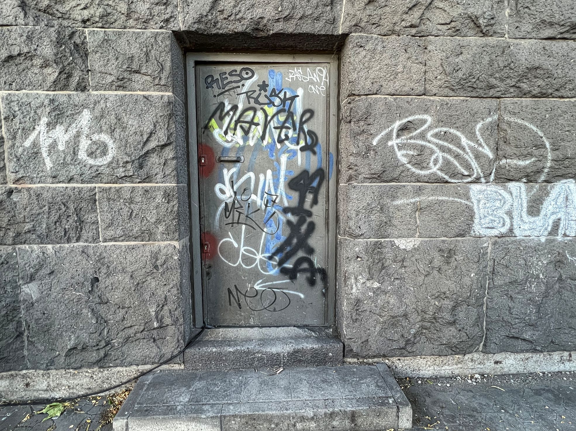 Eine unscheinbare Türe im westlichen Brückenkopf der Krefeld Uerdinger Rheinbrücke, nicht besonders schön, mit Graffiti verziert und normalerweise fürs Publikum verschlossen. An diesem Freitag stehe ich hier mit ca. 20 Kunstinteressierten. Die Uerdinger Rheinbrücke, 1936 als Adolf-Hitler-Brücke eröffnet, ist ein gern fotografiertes Wahrzeichen für jeden, der am Uerdinger Rheinufer spazieren geht. Den Namen von 1936 hat sie nach dem Krieg natürlich wieder abgelegt.