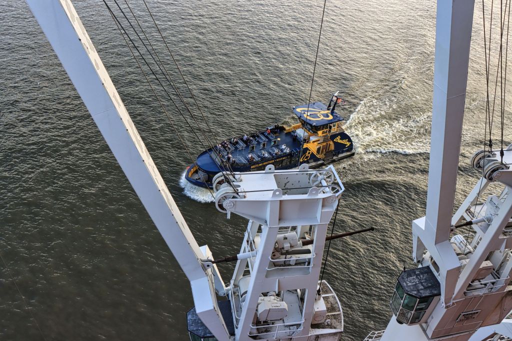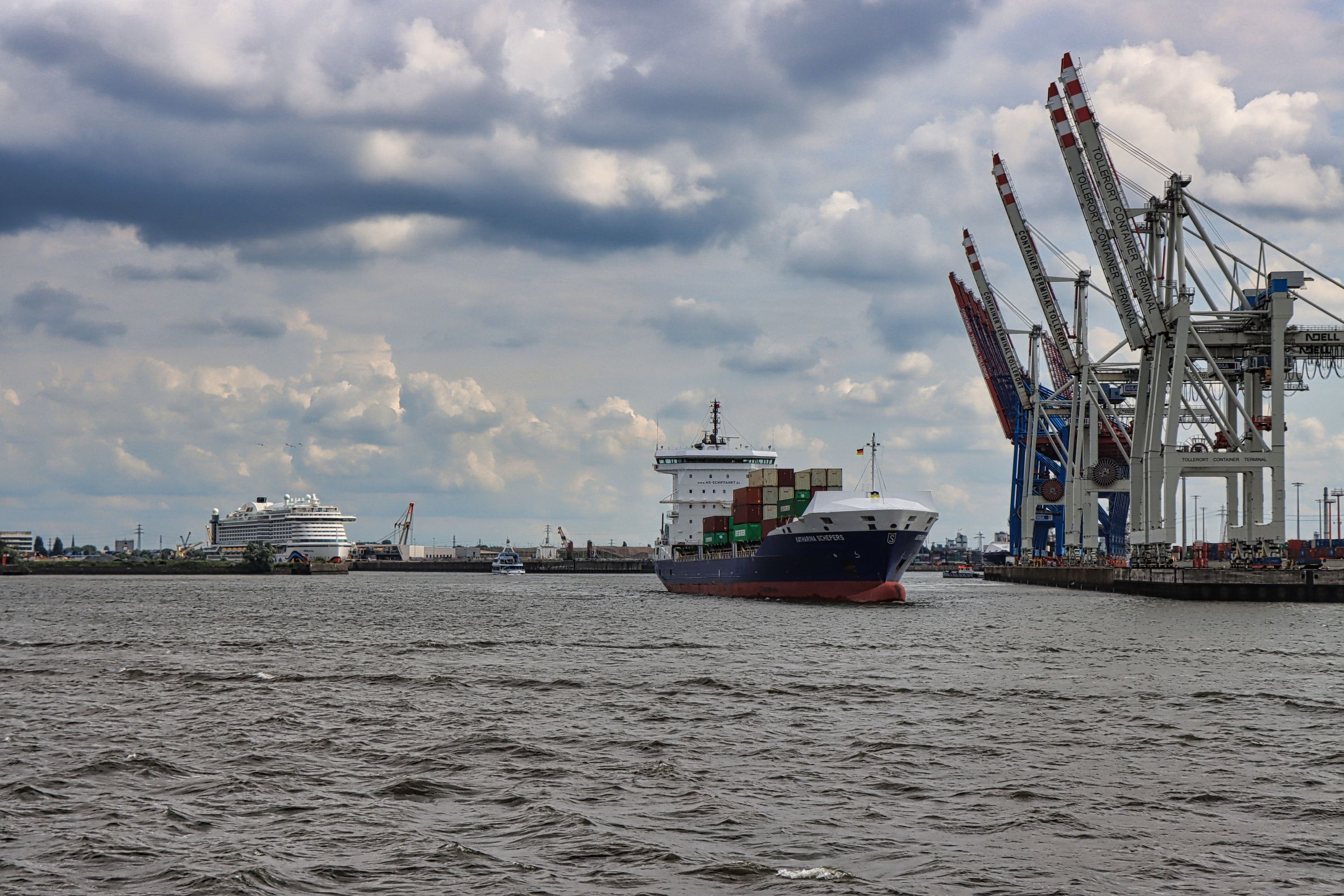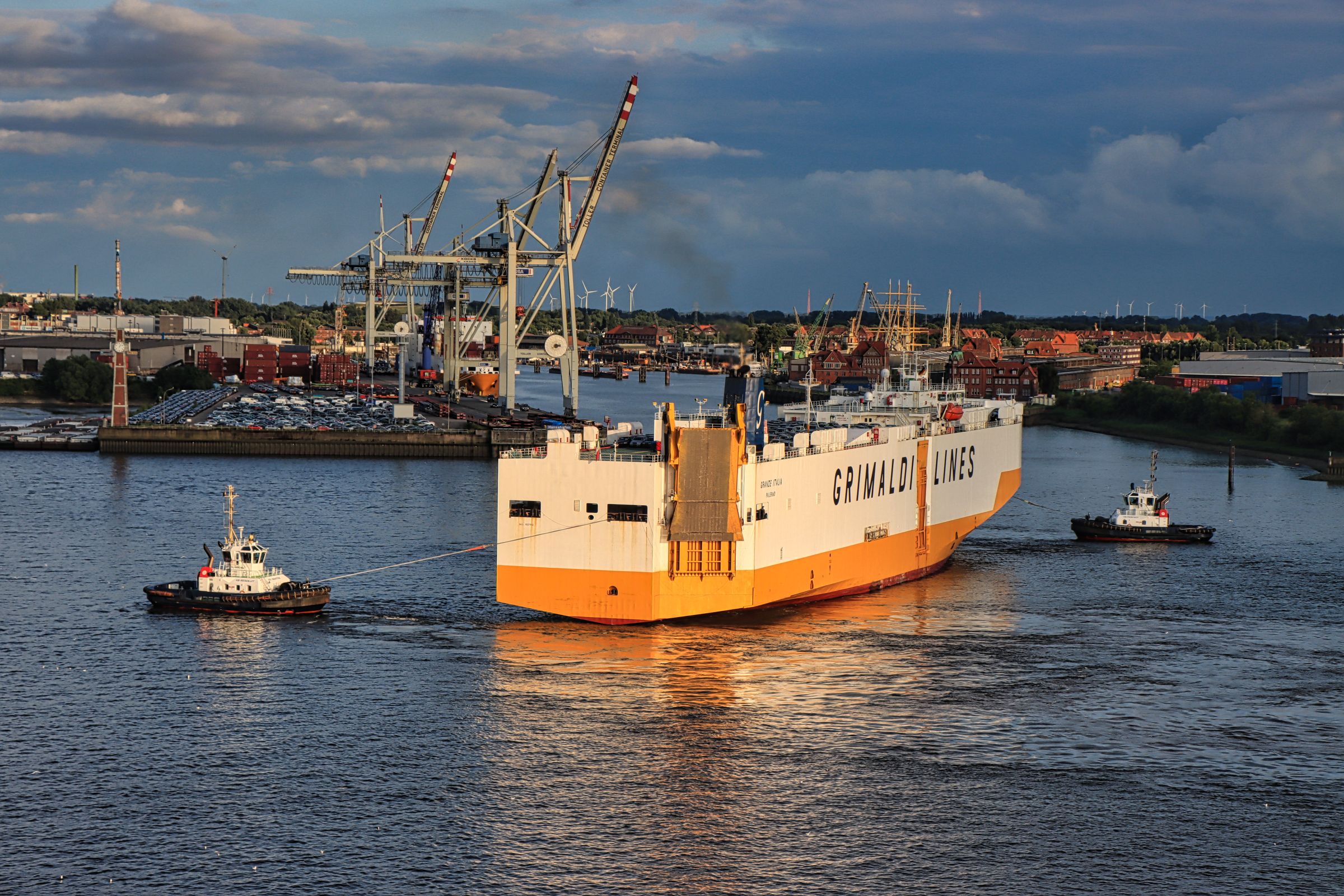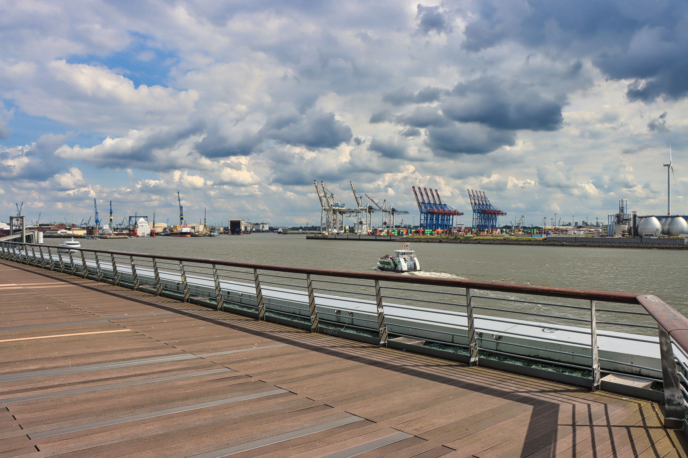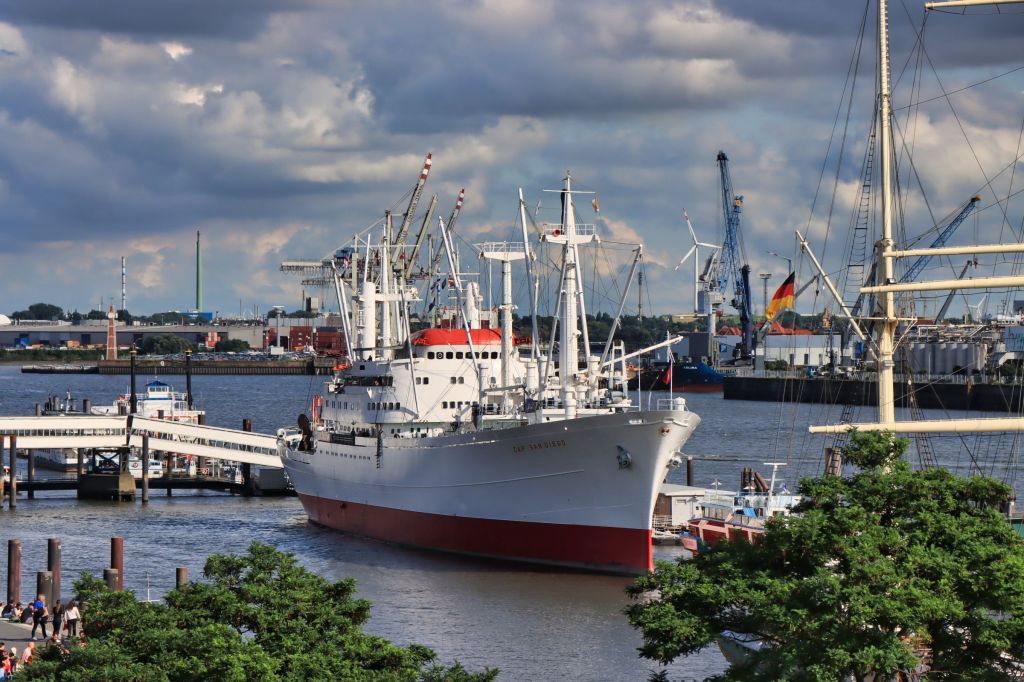 Was nicht fehlen darf, wie das Fischbrötchen an den Landungsbrücken, ist der Besuch der Elphi Plaza. Leider war mir auch dieses Jahr wieder kein Sonnenuntergang gegönnt, aber dafür konnte ich beobachten, wie ein Frachter der Grimaldi Lines von zwei Schleppern beim Einlaufen im Hafen gedreht wurde. Schlepper sind übrigens auch im Dienst, wenn Schiffe den Hafen wieder verlassen. So konnte ich vom Altonaer Balkon beobachten, wie ein Frachtschiff unter der Köhlbrandbrücke hindurch bis in den Hauptstrom der Elbe geschleppt wurde. Verständlich, denn eine Havarie mitten auf oder in der Süderelbe kann keiner gebrauchen.