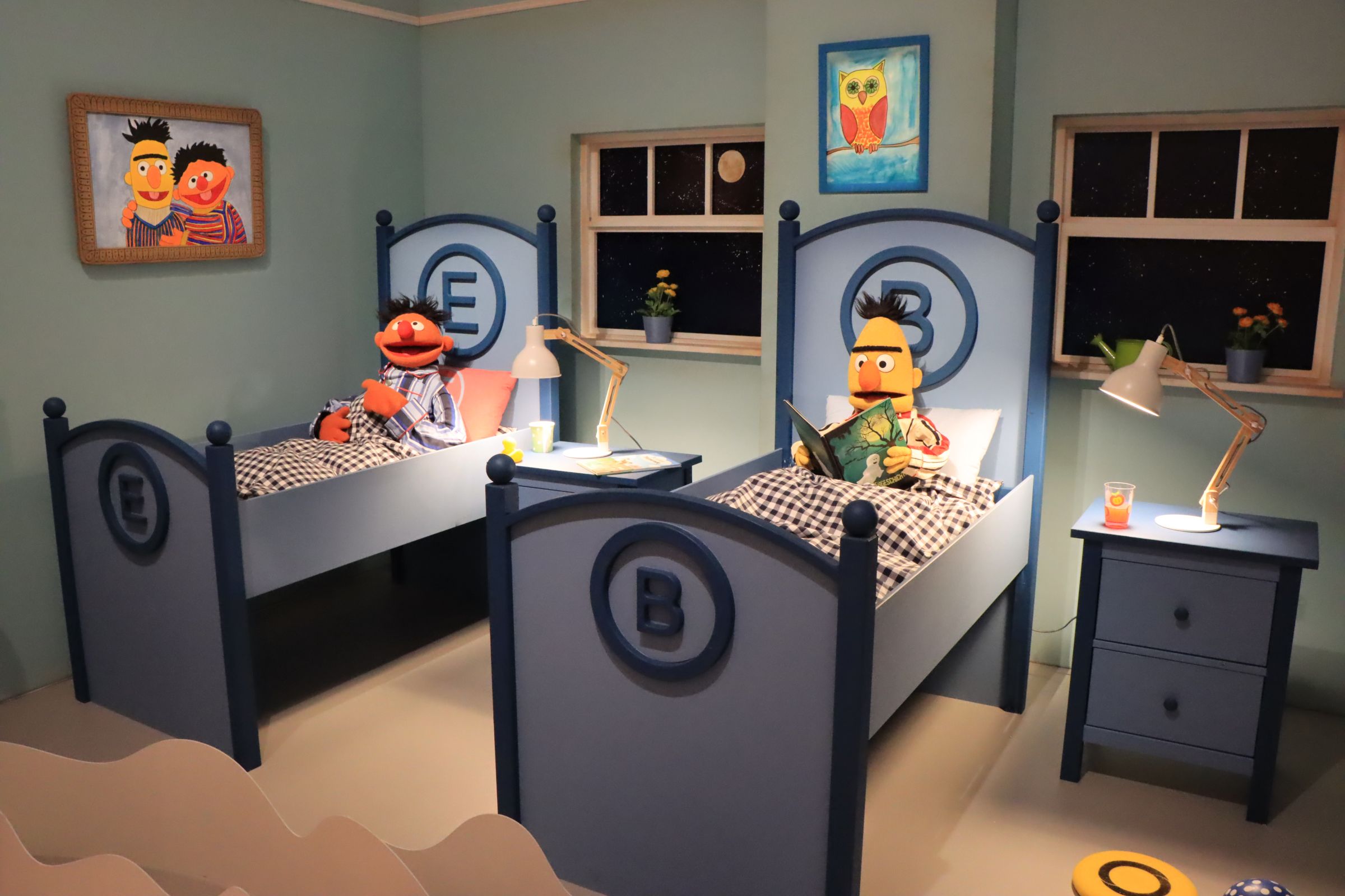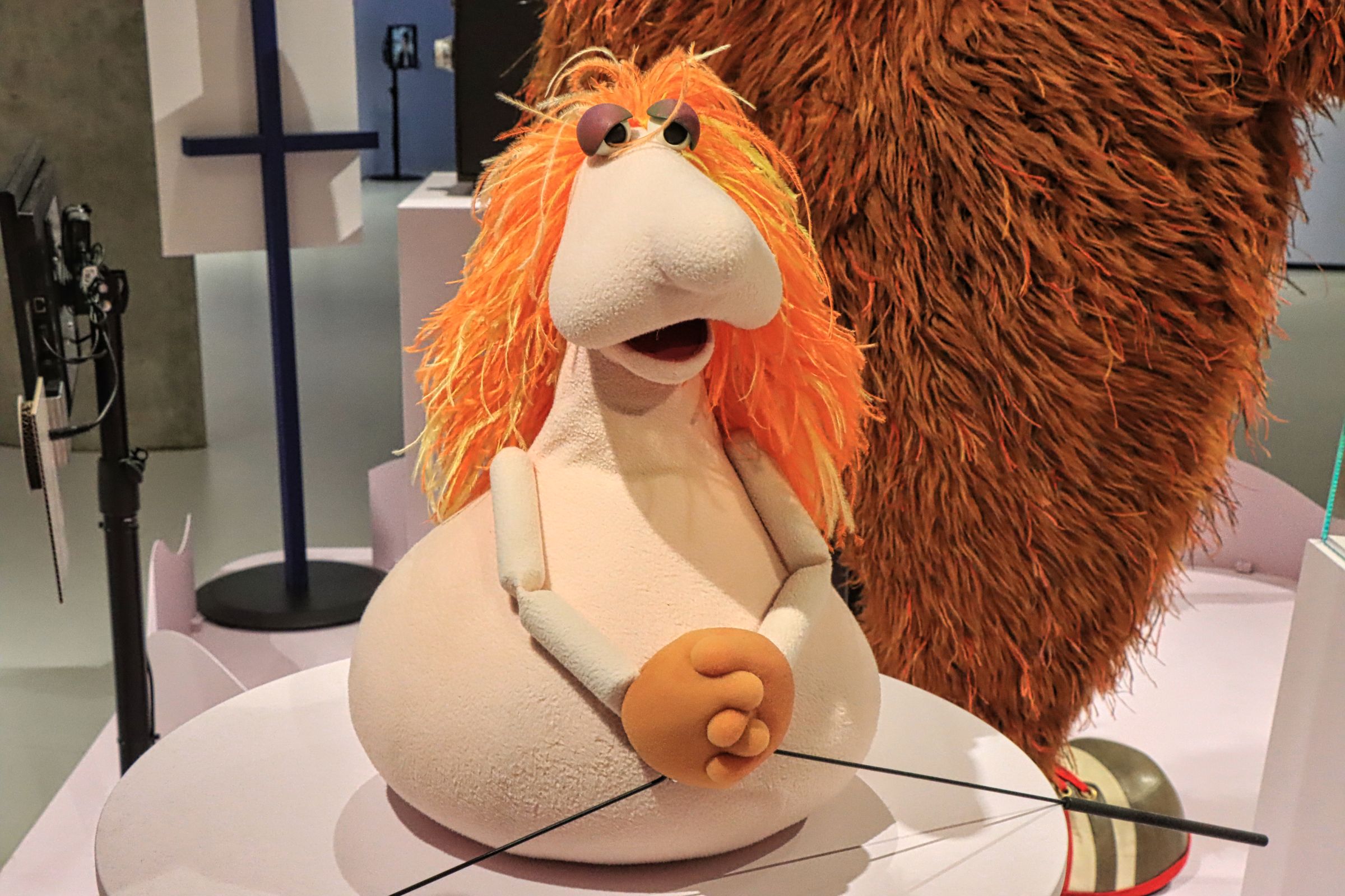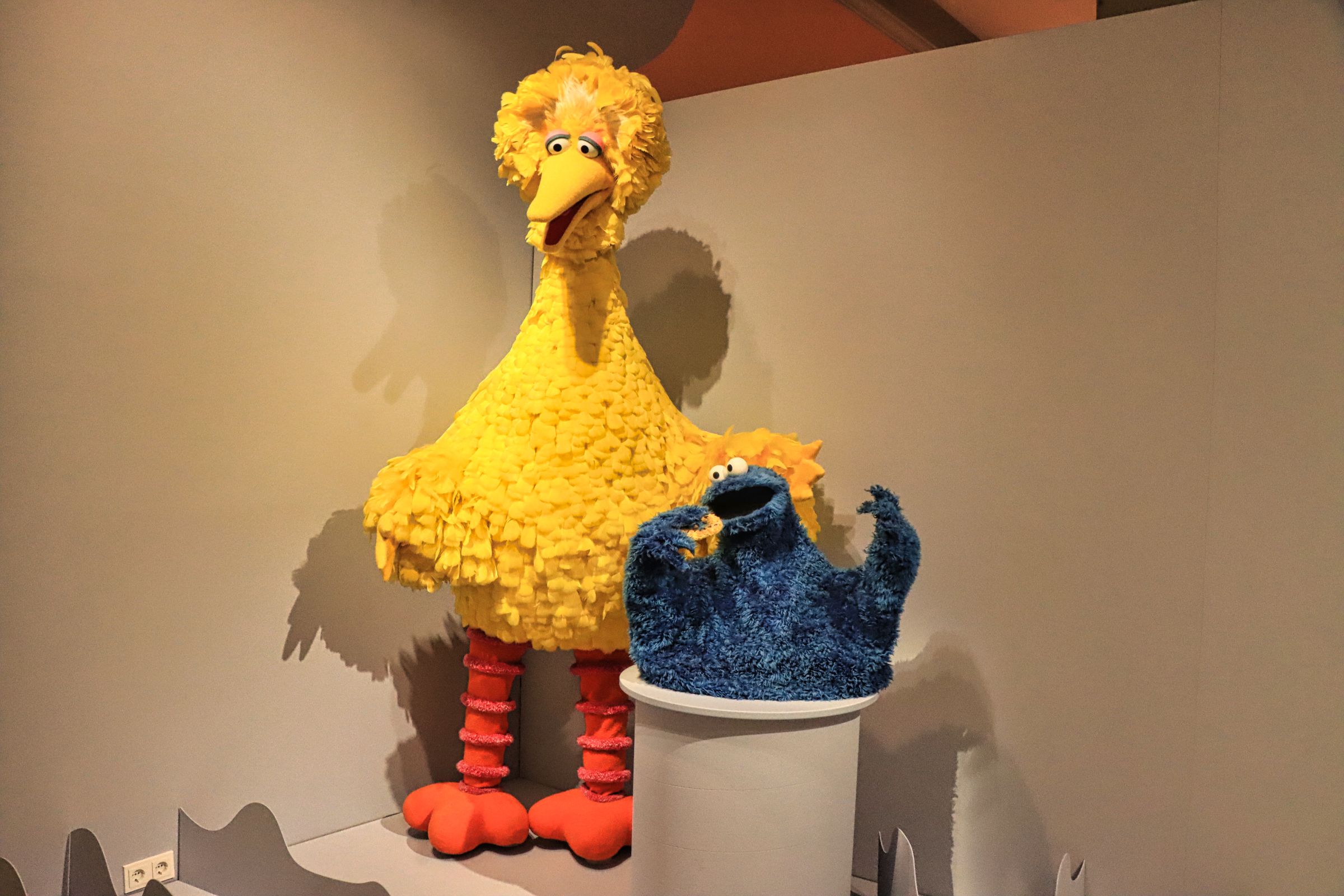 Bibo, das Krümelmonster, Samson und Tiffy, Herr von Bödefeld, aber auch Finchen, Erni und Bert, Elmo, Grobi und der Blaue (von dem ich nicht wußte, daß er so heißt) oder Rumpel sind die Figuren die vorgestellt werden. Man erfährt etwas über die Entstehungsgeschichte und den teilweisen Wandel der Figuren, über die Menschen vor und hinter den Kulissen. Apropos Rumpel, ich kannte ja noch Oscar, aber das ist ein anderes Thema. Die Ausstellung läuft noch bis zum 07.01.2024.