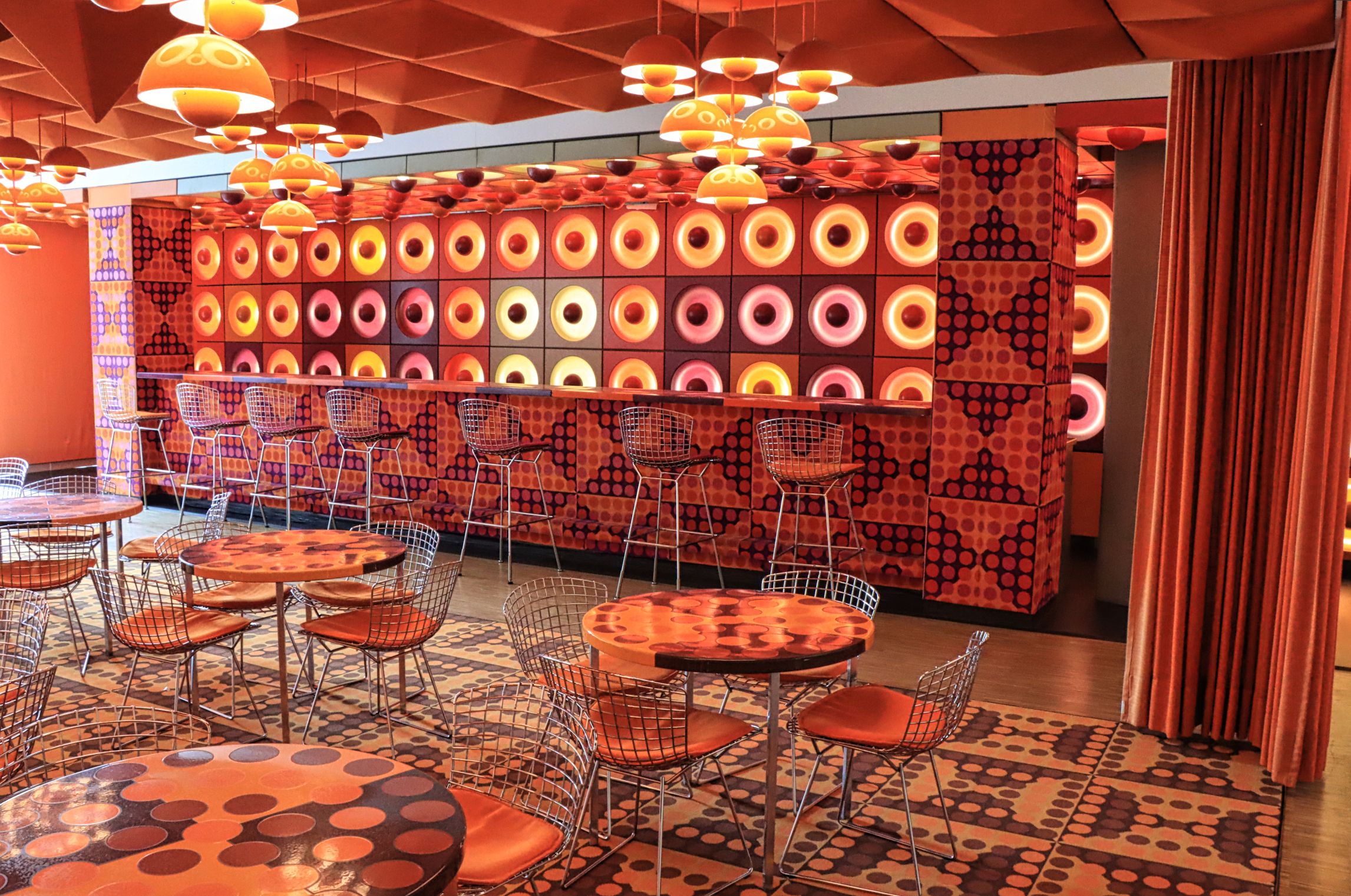 Total geflasht hat mich ja die ehemalige Kantineneinrichtung des Spiegel Verlags. Das komplett im orange der 1970’er Jahre gehaltene Interior ist ja sowas von 70’er. 1969 eingerichtet, gehen 2011, auf Grund eines Umzugs, rund 80 Quadratmeter des orangefarbenen Speisesaals an das Hamburger Museum für Kunst und Gewerbe.