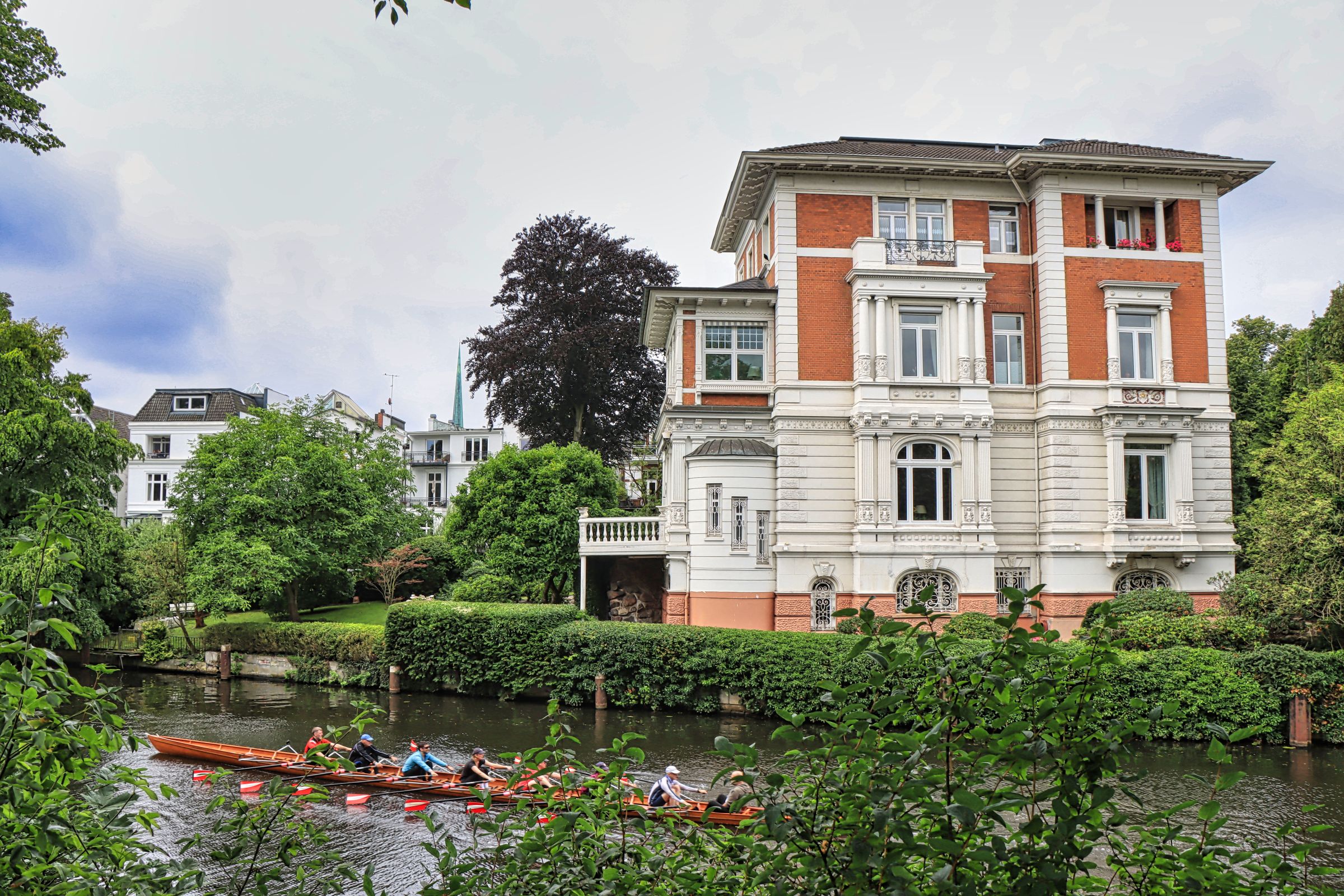 Der erste Teil des Alsterweges führte mich vom Jungfernstieg, an der Kennedybrücke vorbei, bis zum Anleger Fährdamm, am Folgetag bin ich von der U-Bahn Station Klosterstern vorbei an der Krugkoppelbrücke bis zum Zusammenfluß von Alster und Isebekkanal gelaufen. An diesem Sonntag zogen einige Ruderboote vom Einer bis zum Achter an mir vorbei. Harvesterhude scheint ein nettes Wohnviertel zu sein, wenn ich mir die Altbauten z.B. auf der Isestraße ansehe.