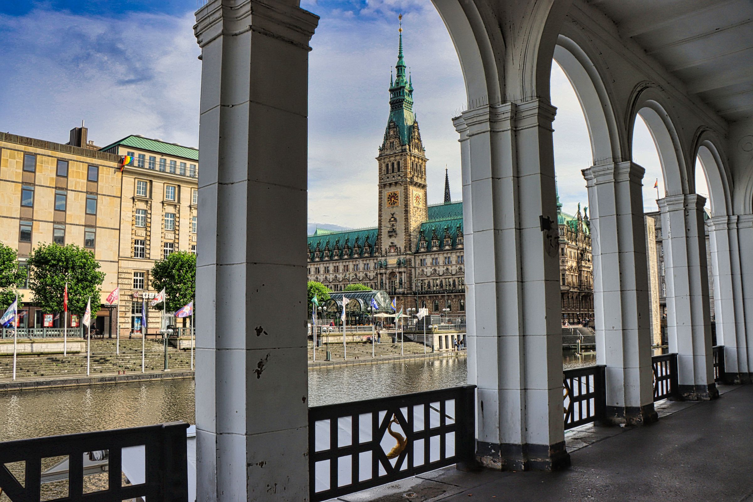 Ein schöner Aussichtsplatz befindet sich übrigens unterhalb des Altonaer Balkons, einmal auf dem Dach der Docklands, aber auch auf dem Dach des daneben liegenden Cruise Centers, das ich dieses Jahr erstmals erklommen habe. Lieber ans Wasser, aber gleichzeitig etwas grün gefällig? Dann empfehle ich den Weg auf der westlichen Seite der Außenalster. Ihr lauft weitestgehend direkt am Wasser, trefft vermutlich auf ein paar Jogger und habt, wenn die Füße nicht mehr tragen, immer wieder die Möglichkeit in eines der Schiffe der Alsterrundfahrt einzusteigen. Außerdem fährt die U-Bahn (U1) in einer Entfernung von ca. 800-900 m parallel vorbei.