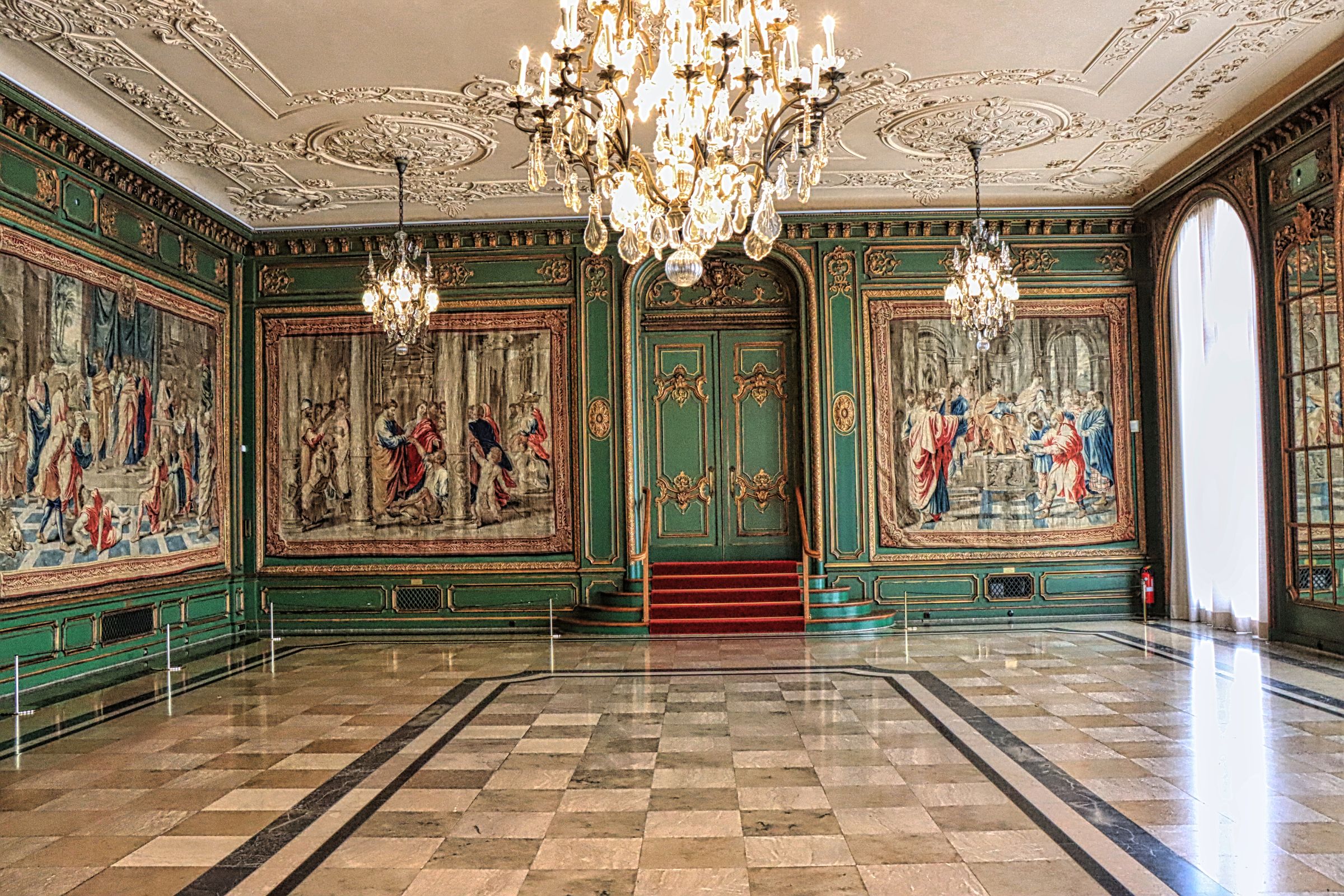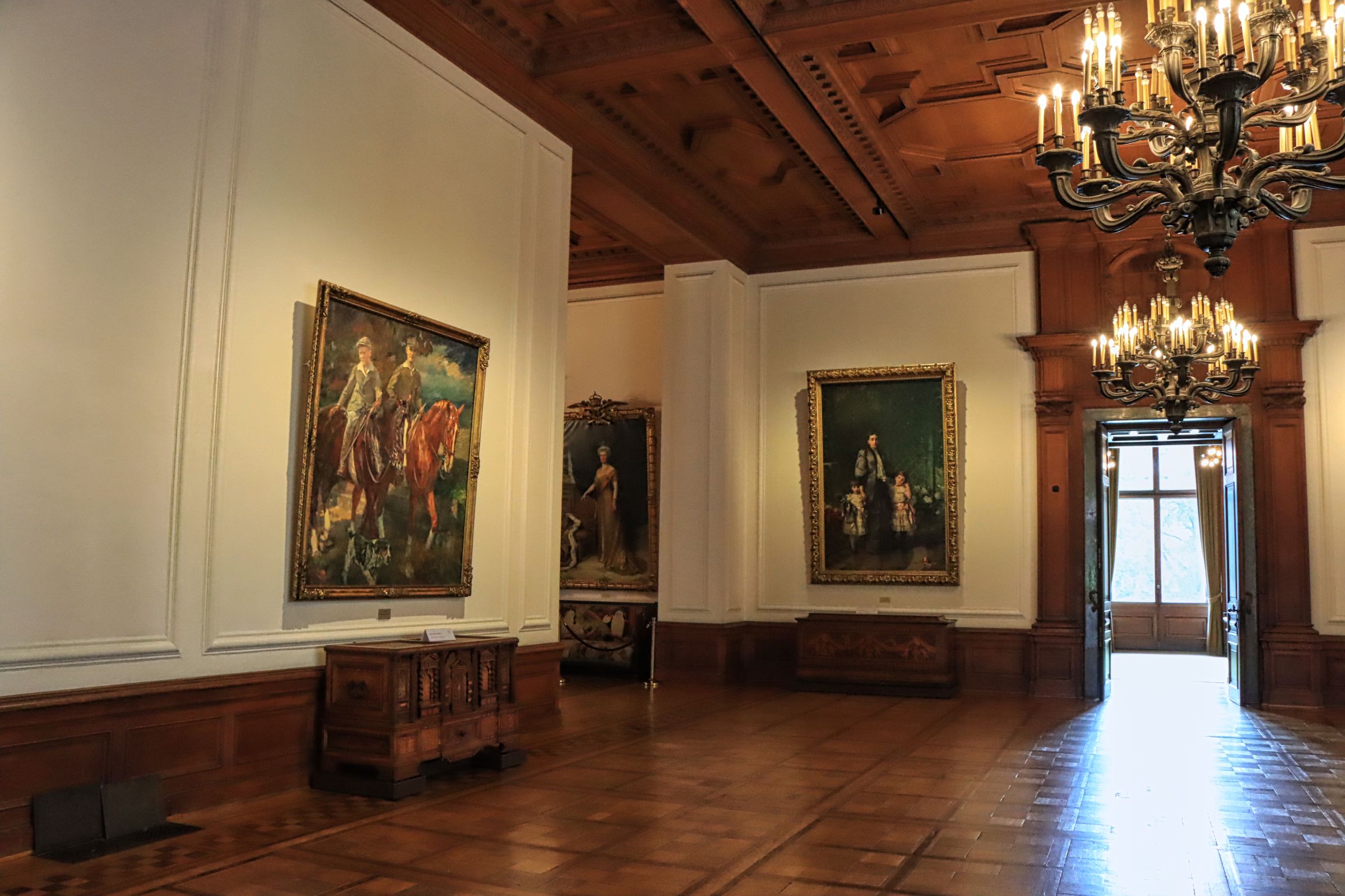 Aber es reicht für einen ersten Eindruck schon, einen Blick in die obere Halle oder das Arbeitszimmer zu werfen, in den Saal mit Spiegeln und Wandteppichen oder in die große Eingangshalle. Überall schön knarzender Parkettboden, kaum zu glauben, daß im Dezember 1987 Rheinhausener Arbeiter während einer Krupp Aufsichtsratssitzung die Villa Hügel in Essen stürmten (es gibt die Bilder bei Jahresrückblicken auf die 80’er Jahre immer mal wieder zu sehen). Heute ist die Alfried Krupp von Bohlen und Halbach-Stiftung Eigentümerin des Anwesens.