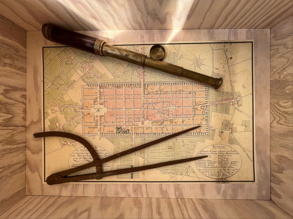 Und was gibt’s zu sehen? Stationen der Stadtgeschichte, von der Gründung 1373 bis zum ersten Oberbürgermeister 1911. Wie hieß der noch gleich? Ach ja, Johannes Detlev Ernst Johansen. Es geht um Stadtteile die Krefeld ausmachen und um Stadtteile, die Krefeld 1975 zugeordnet wurden, auch wenn das nicht allen gefällt. Kleine Filme stellen Stadtteile vor und schwarzweiße Bewegbilder nehmen euch mit in ein Krefeld kurz nach der Jahrhundertwende um 1910.