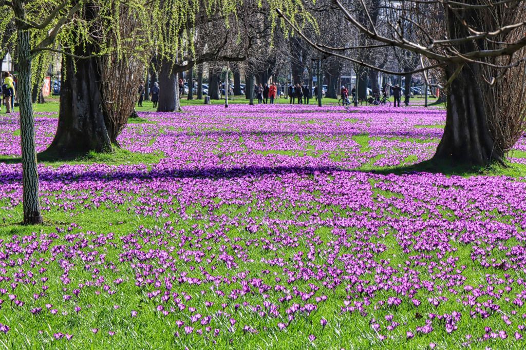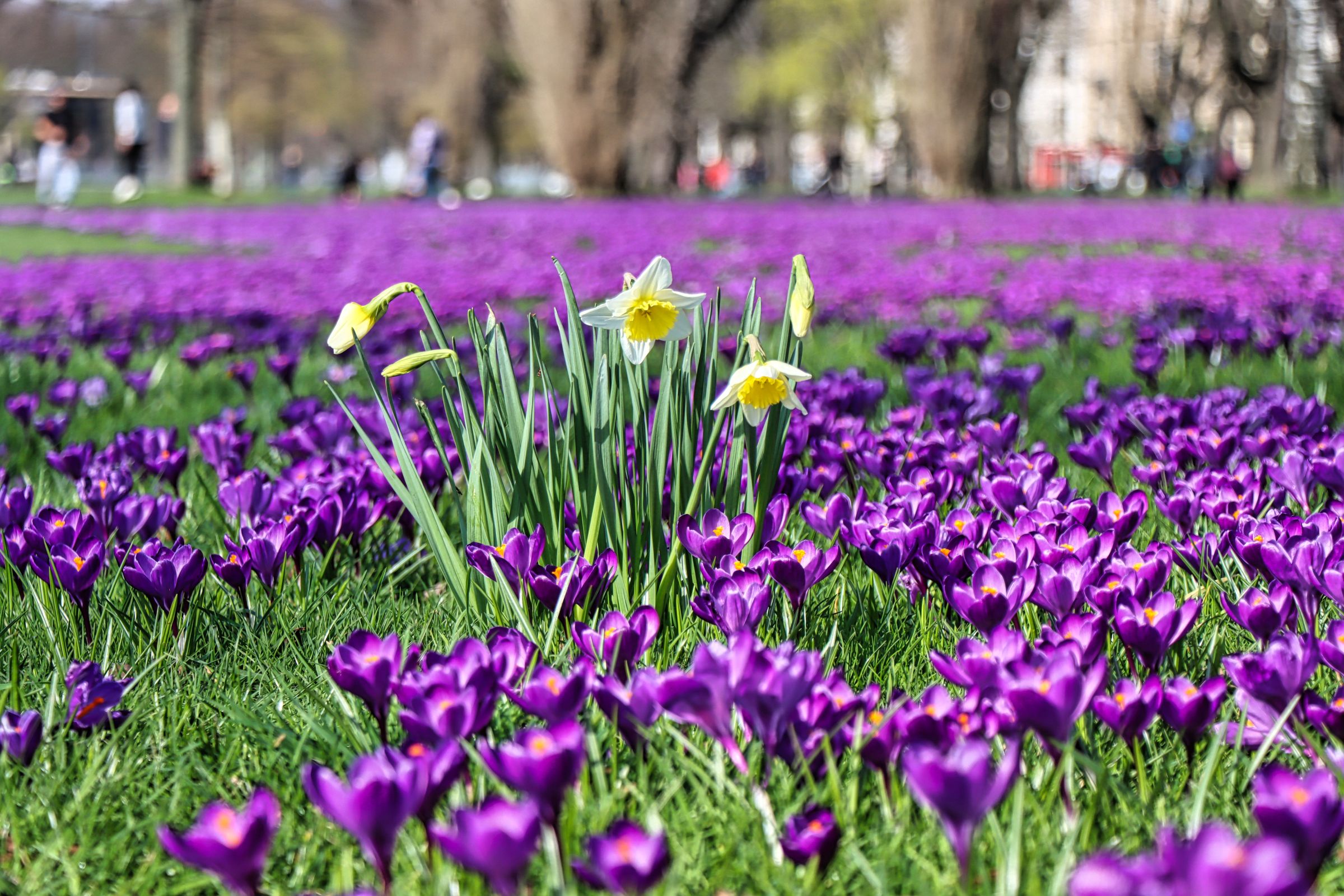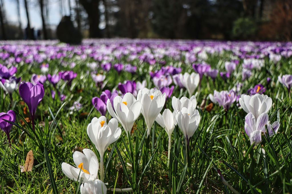 Der Düsseldorfer Nordpark (gleich hinter dem Aquazoo) ist nach wie vor ein tolles Ausflugsziel, wenn man den Winter hinter sich lassen will. Wenn die Krokusse sprießen ist die dunkle Jahreszeit vorbei und neben dem Nordpark ist das blaue Band im Rheinpark Golzheim, südlich der Theodor-Heuss-Brücke wie ein Farbklecks auf einem Schwarzweißbild. Angeblich sind es immer noch 5 Millionen lila Krokusse und ein gutes Dutzend Narzissen noch dazu, die hier blühen.